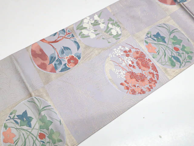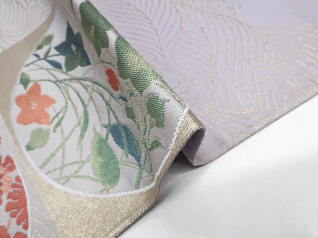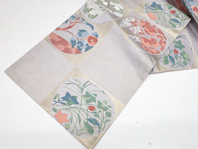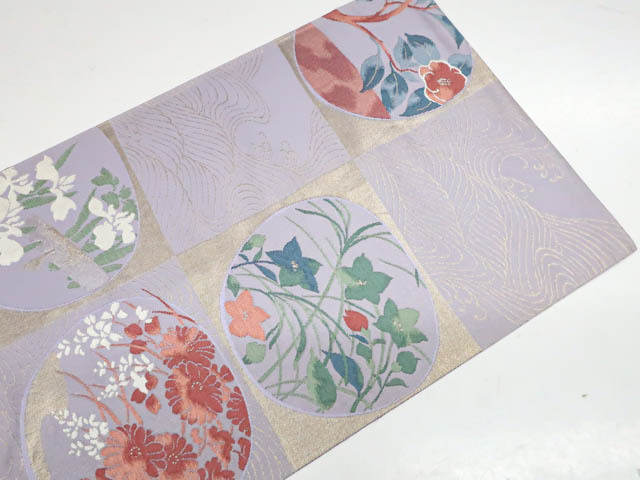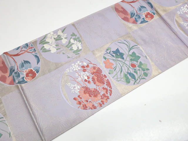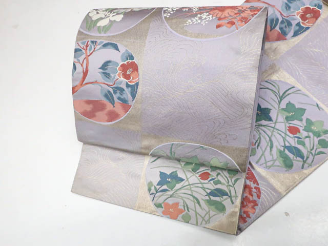 リサイクル商品の為、無地場薄汚れがございますがご着用いただけると存じます。 地色は薄紫です。 1枚目の画像が近いお色かと思われます。 素材は正絹です。 |