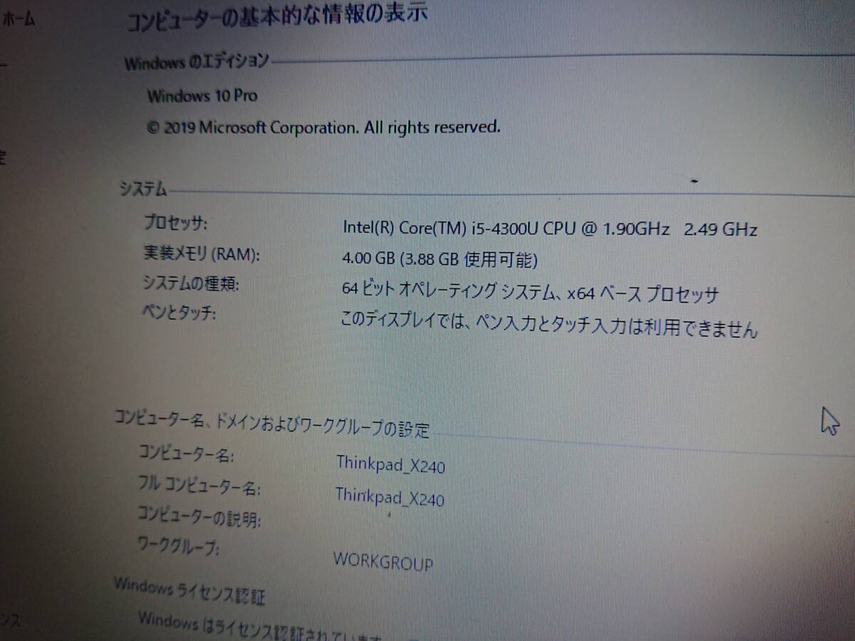 このオークションで入手し、タッチパッドをX250用に交換してサブ機として使用(主にWi-Fi経由でWeb 閲覧)していました。 ◆主な仕様は、以下の通りです。 ・CPU:intel core i5 4300U ・RAM:4.00GB ・メインドライブ:SSD 128GB ・OS:Windows10 pro ◆外部バッテリー充電可です。 ◆古い機種なので、経年による使用感や細かいキズ等はあります。 天板にはスキンシールを貼っていますので、一見美品に見えます。 ◆キーボードの文字のカスレ等は特にありません。 ◆本体とACアダプタの出品となります。 以上をご理解のうえ、入札願います。 | ||||