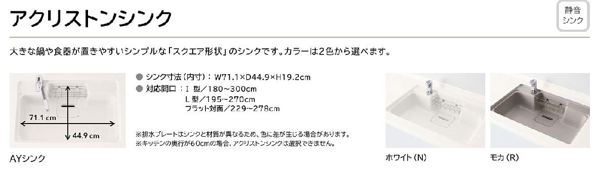 ◆ワークトップとシンクの接合部は段差や隙間のない『アクリストンシンク』