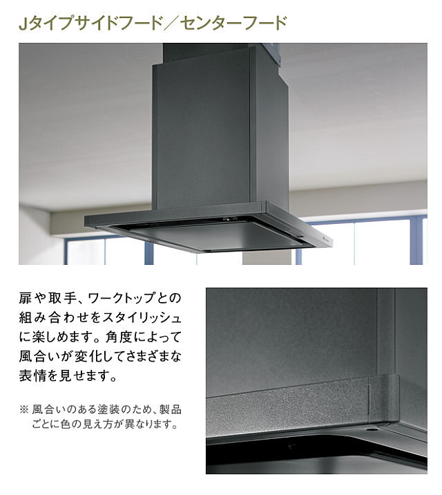 ◆フラット対面アイランドキッチンにあうスリムなデザインの『Jタイプセンターフード』