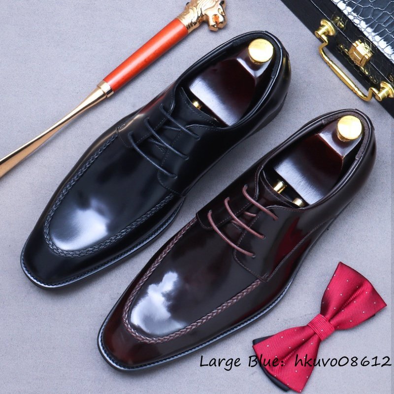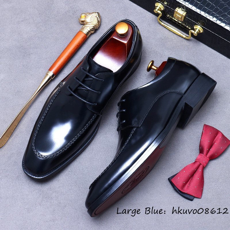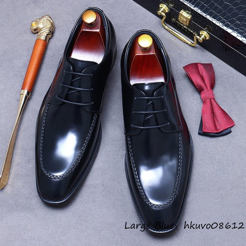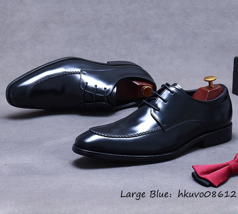 超希少★定価10万 メンズ 職人手塗り上げ 本革 レザーシューズ 牛革 ビジネスシューズ イギリス風 光沢 紳士靴 革靴 結婚式 黒 24.5cm