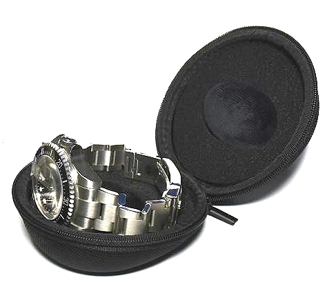 腕時計から、GショックやDIESELなどのフェイスが大きめのものまで対応いたします。(大きい時計を入れる場合スポンジを抜く方がスムーズです。)時計のメンテナンスに欠かせないやわらかい布1枚お付けいたします。時計は付属致しませんは付属しませんのでよろしくお願いいたします。デザイン等は変更する場合がありますのでご了承ください5.5cm(竜頭含む)までの時計フェイスの大きさが入ることを確認しております。商品仕様■サイズ :9.5cmx4cmx6cm■カラー :ブラック■重さ :約55g■専用布 :1枚色は色々です■クッションスポンジ:1枚メール便 送料無料