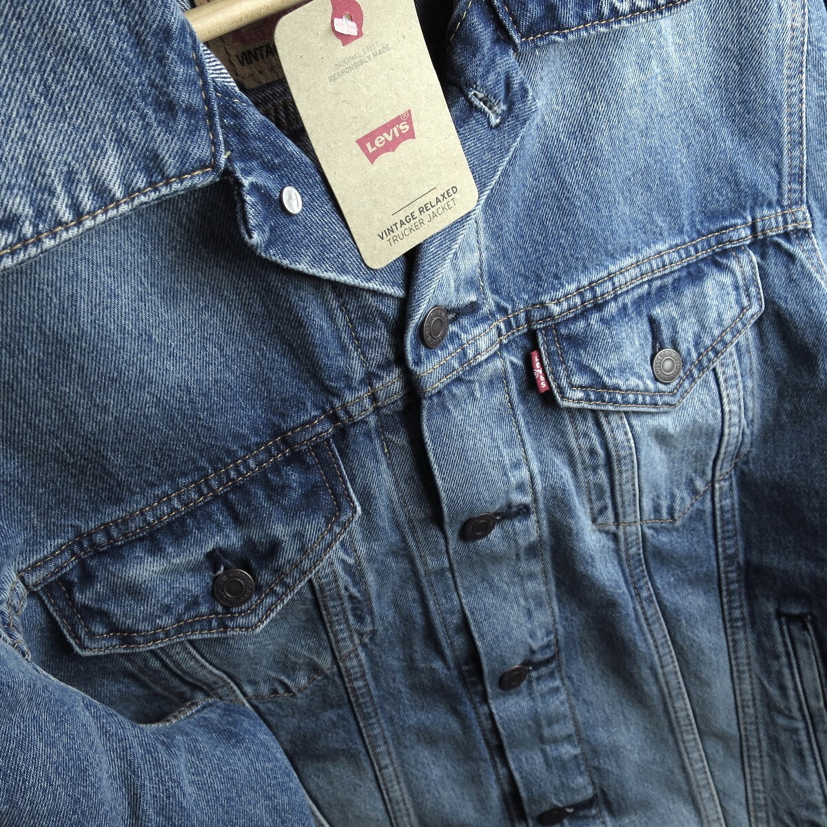 ■肩と袖にゆとりを持たせたボクシーなシルエットのVintage Fit トラッカージャケット。 ■季節や流行問わず長年着用できるようなデザインと、綿100%でしっかりとした生地感で何十年と愛用し、世代から世代へと受け継ぐにふさわしいアイテムです。 ■フロントに2つのポケット、両サイドにもポケットが施されているので機能性のあるデザイン。 ■ムラのあるリアルな色落ちやアタリが再現されたカラーリング。 ■幅広いスタイリングに合わせやすい一着です。 ■リラックスフィット ■ボタンフラップ胸ポケット ■ロングスリーブ ■メタルボタン ※レッドタブが『Levi's』のものと『R(レジスターマーク)』のみのものと2種類ございます。 約10分の1の確率でR(レジスターマーク)が混在するため、一部マニアの間ではレア感があるとも言われていますが 落札の際にお選びいただくことはできません。予めご了承ください。 |