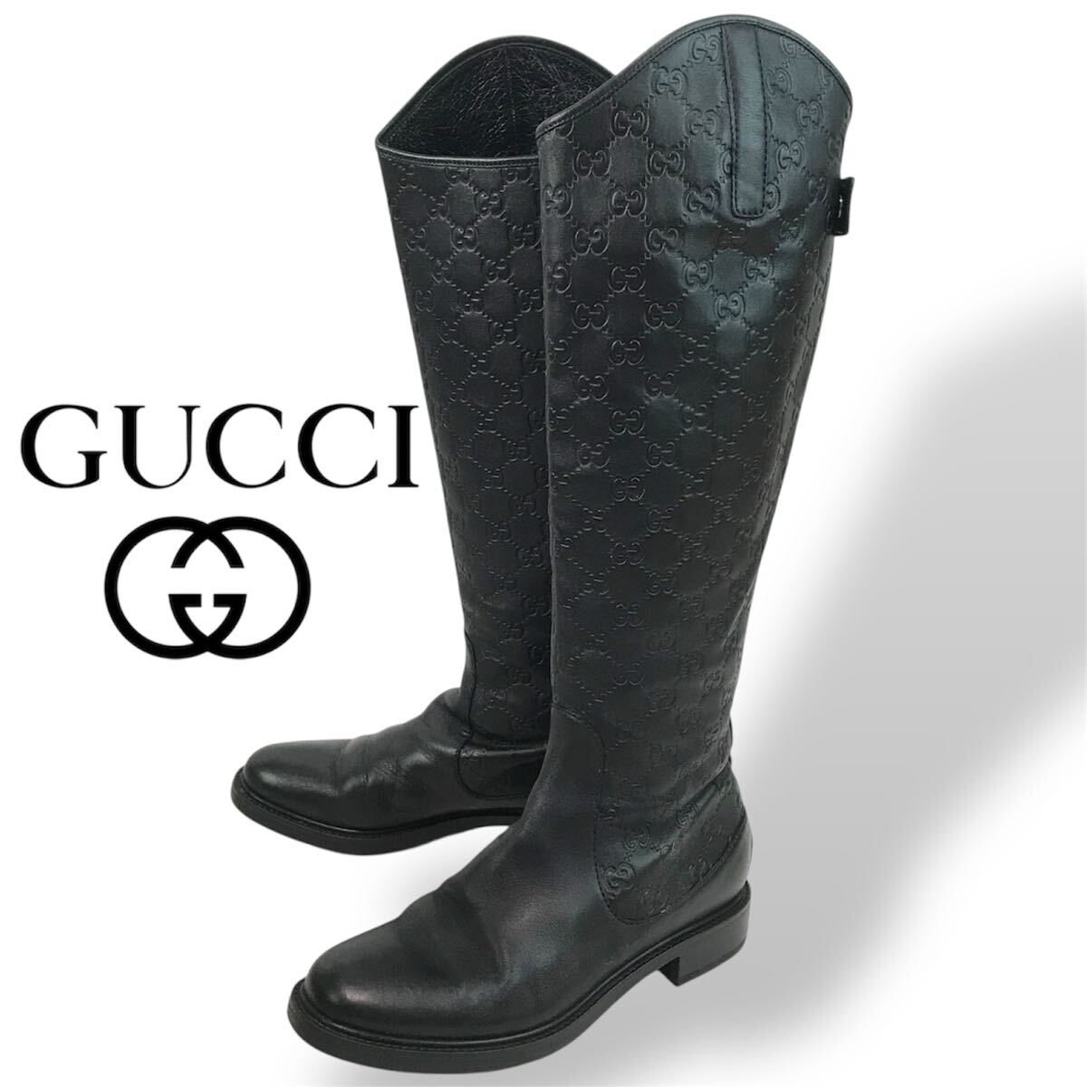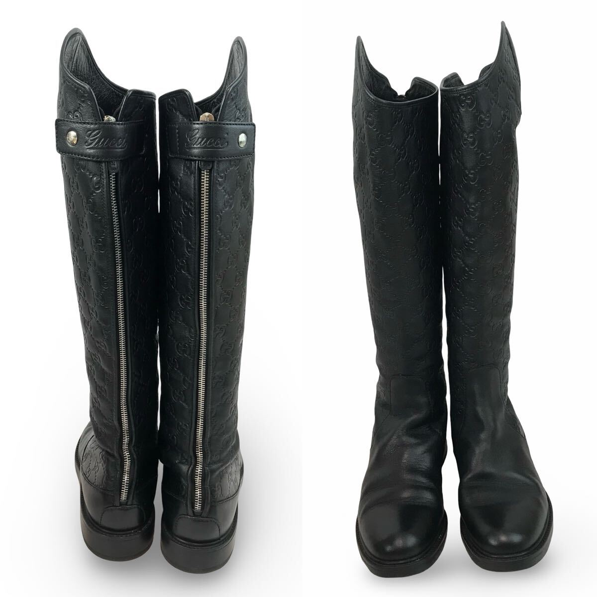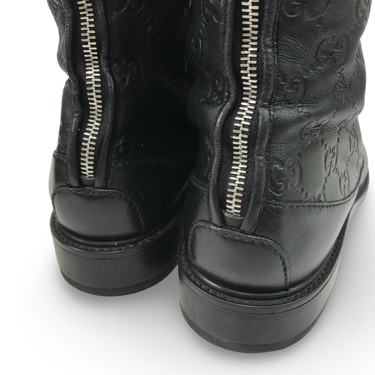 f106 GUCCI グッチ GG柄 レザー ロングブーツ バックジップ 38.5 イタリア製 296161 レディース 正規品 シューズ BLACK Vintage