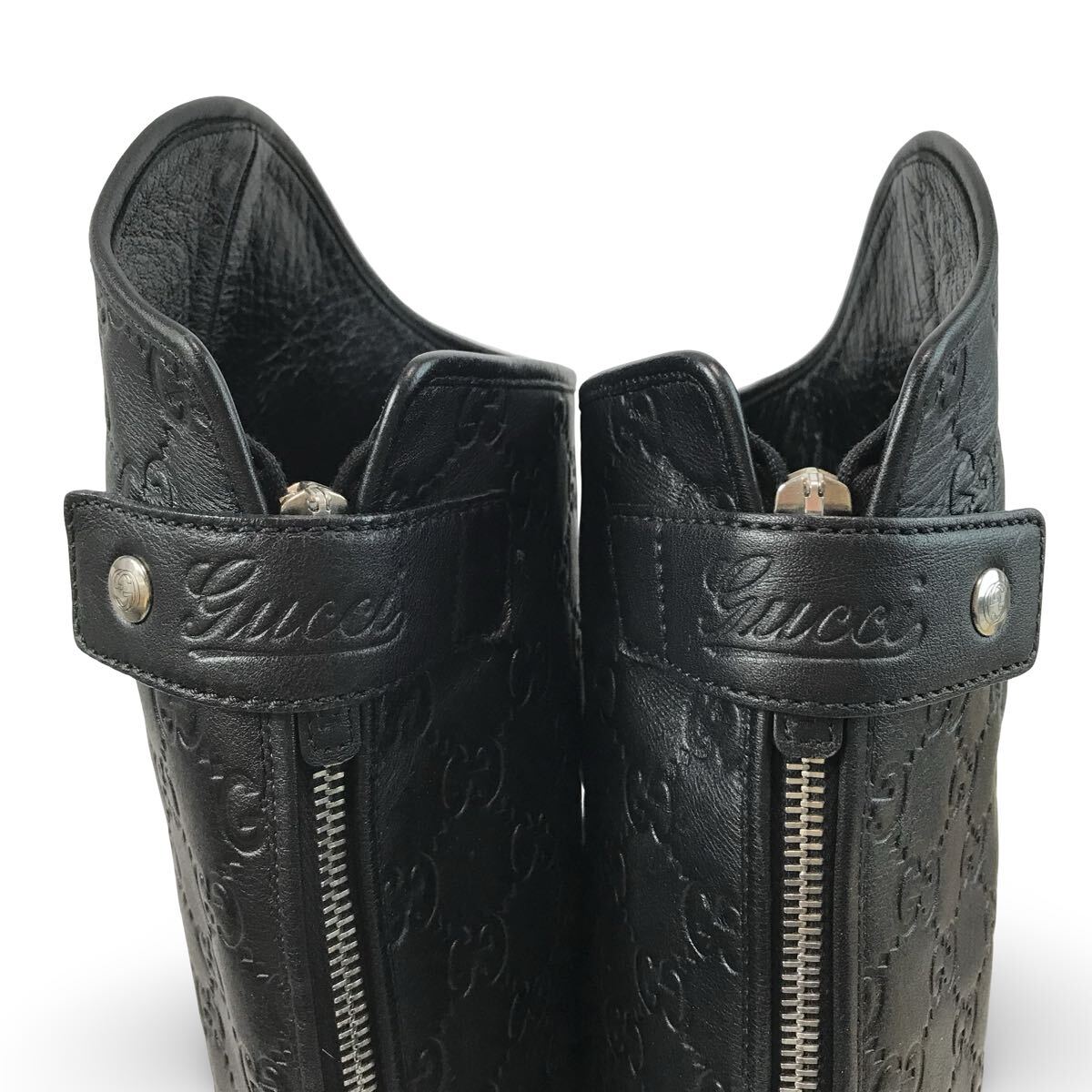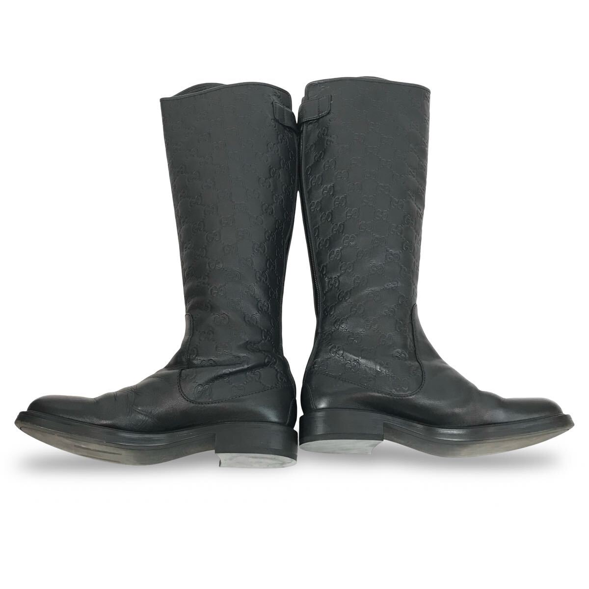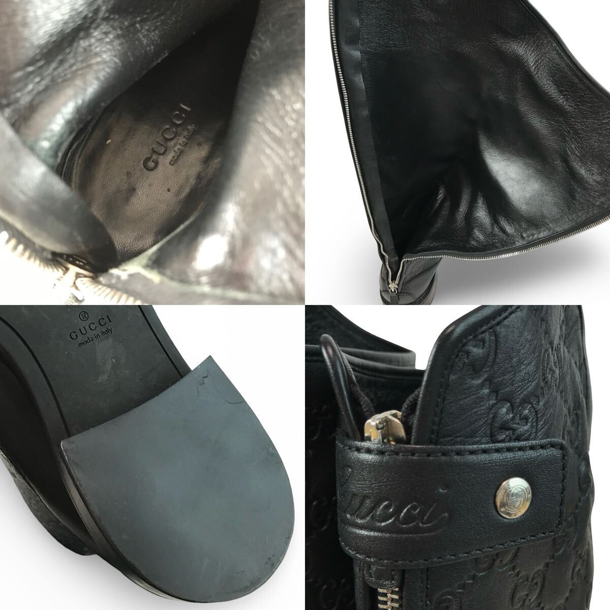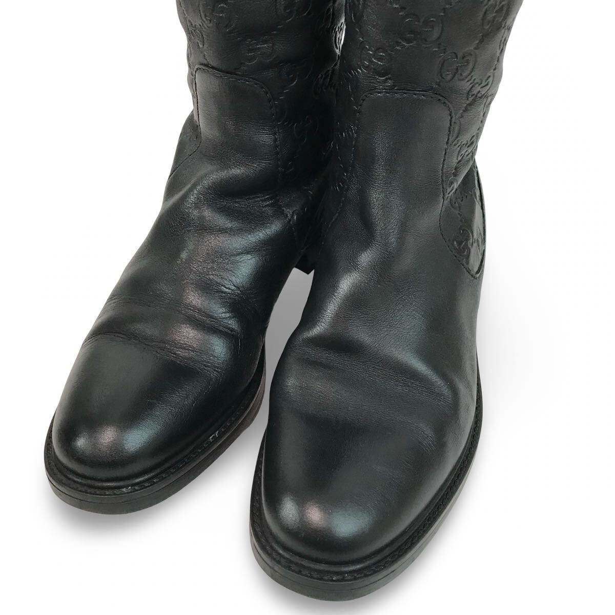 f106 GUCCI グッチ GG柄 レザー ロングブーツ バックジップ 38.5 イタリア製 296161 レディース 正規品 シューズ BLACK Vintage