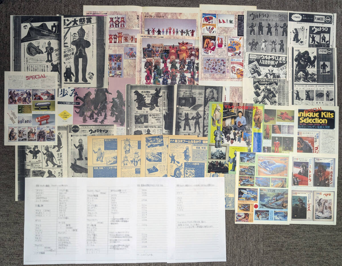 オーロラ・ファンクラブ会報 マルサン電動歩行怪獣ロボット組立図コピー オーロラ・プラモデル箱絵コピー ブルマァク等ソフビ雑広など