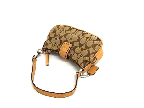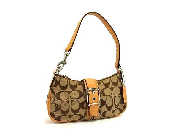 1円 ■美品■ COACH コーチ 6362 シグネチャー キャンバス×レザー ワンハンドル ミニハンドバッグ レディース ブラウン系 FS7783