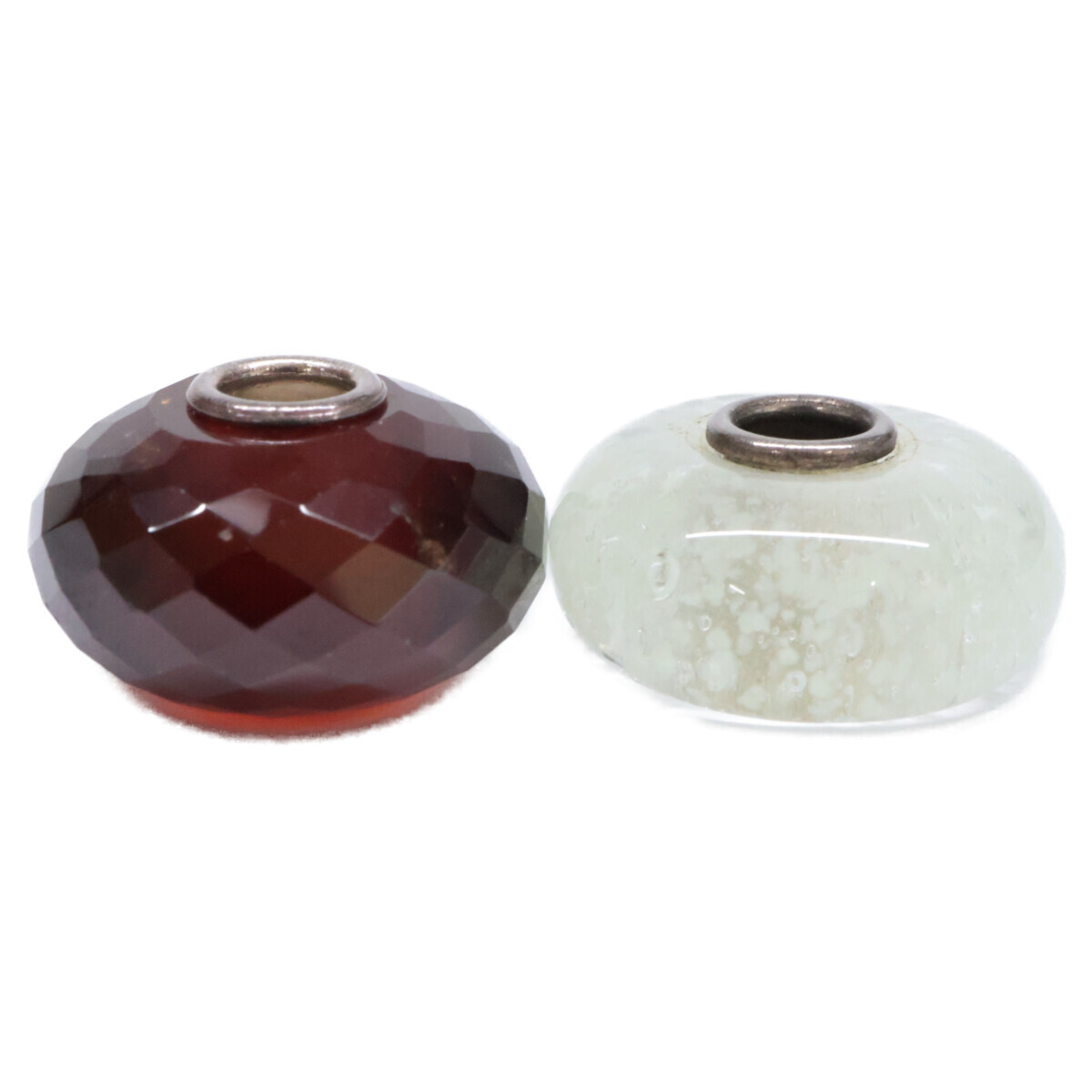 【美品】TROLLBEADS インナーグロウ ガラスビーズ・アンバー/フェルドスパーアズライト/モスアゲート他 天然石ビーズ 計10点