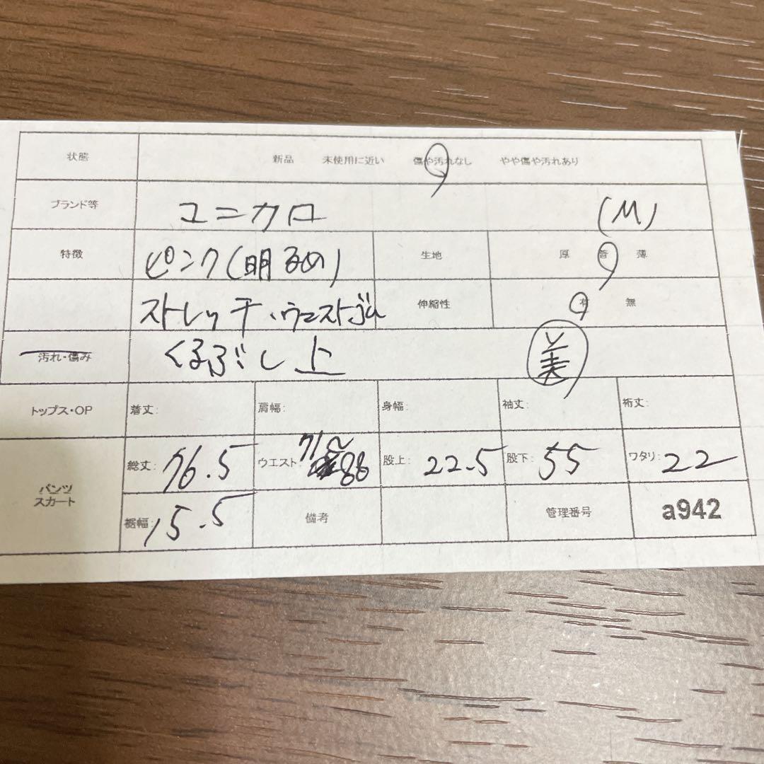 【ユニクロ】UNIQLO カラーパンツ【M】ストレートズボン ウエスト調整可能 37C247