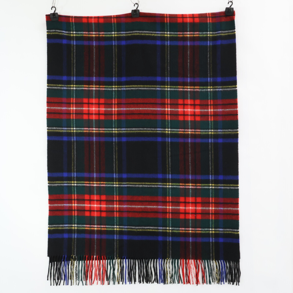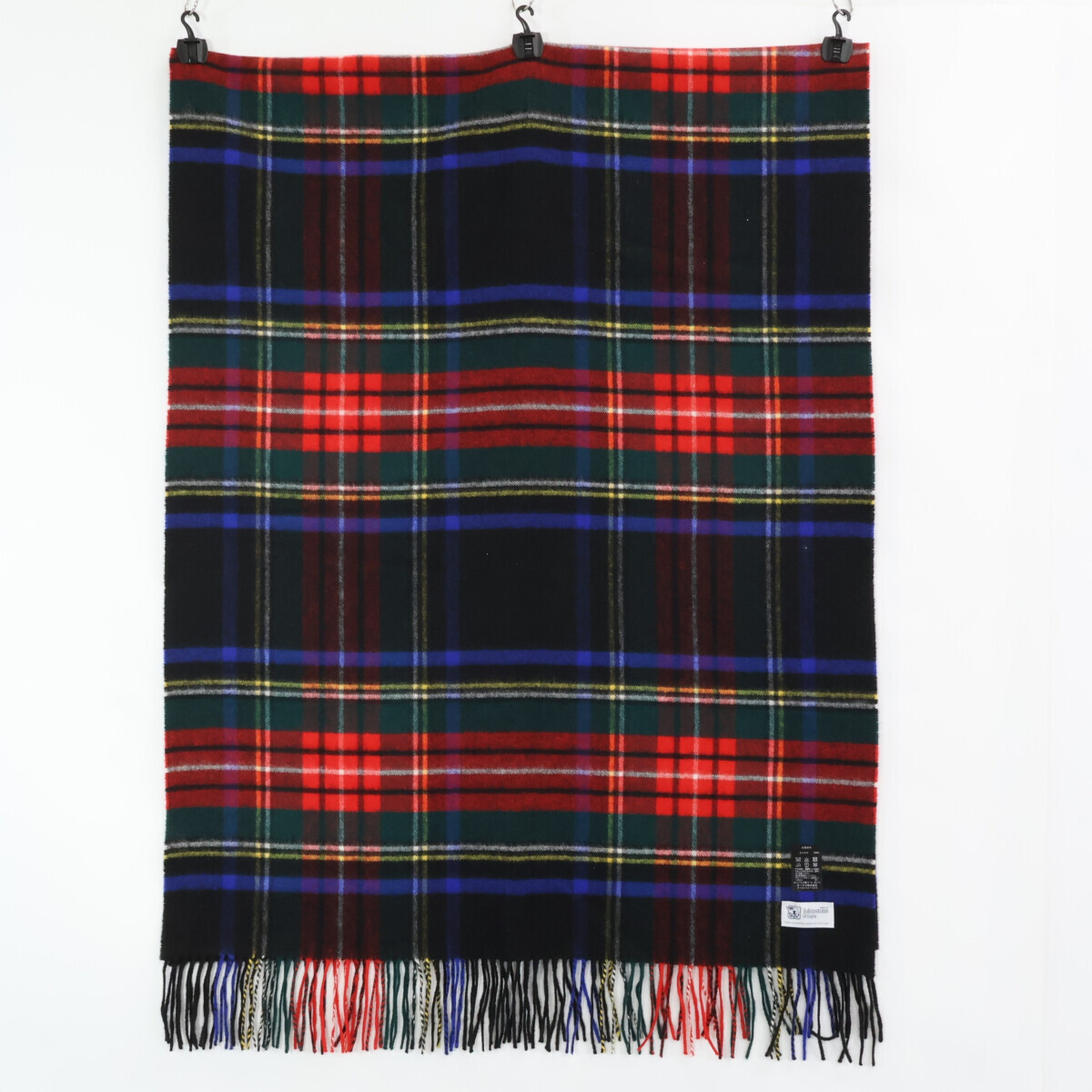【1円】Johnstons ジョンストンズ タータンチェック カシミヤ フリンジ ストール Black Stewart レディース