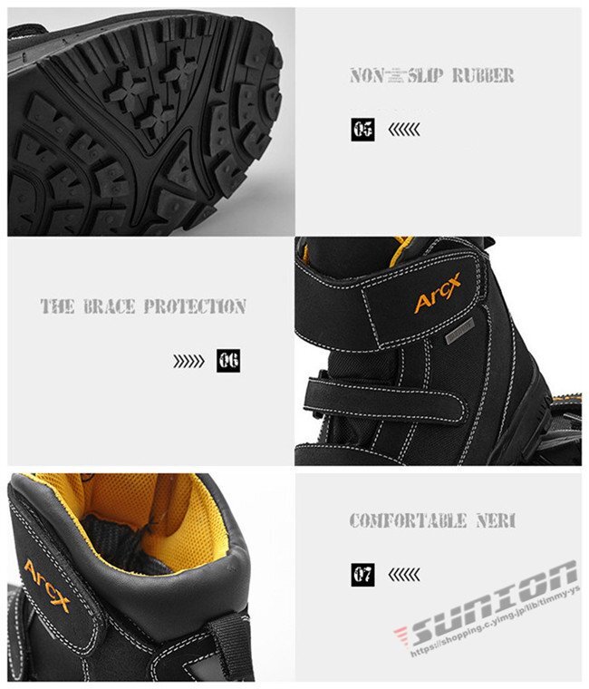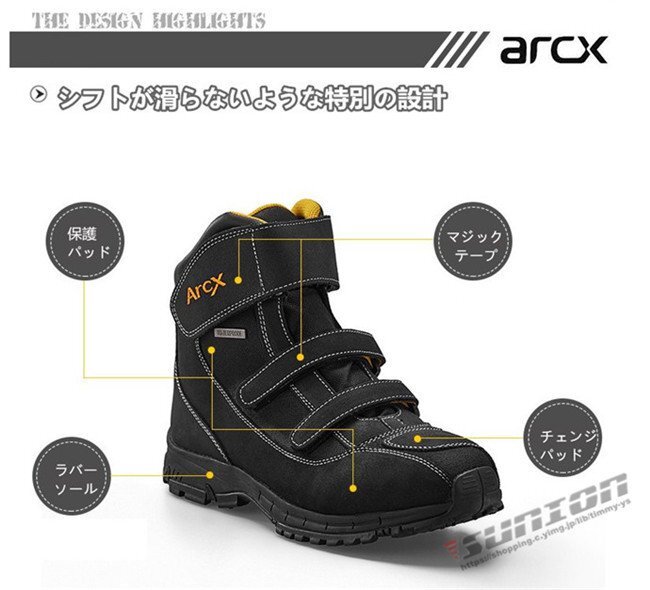 【商品特徴】◎春から、夏、秋,冬まで長いシーズン着用頻度の高いメンズ用のライダー ブーツ◆シフトペダルから足や靴を守るシフトパッド付き◎革新的なフロントにより、優れた柔軟性/フィット感を実現◎くるぶし部分には衝撃吸収パッド内蔵により安全性を高める◎リフレクター装備により夜間走行中にも安全性を向上◆剛性の高いソールは足首を捻ることを防止◎耐摩耗性/優れたグリップ力の向上のラバーソールの構造設計【商品スペック】【素 材】:耐摩マイクロファイバー素材【ソール】:ラバー