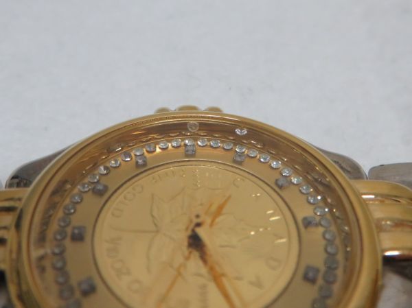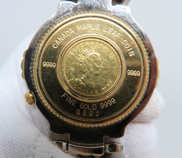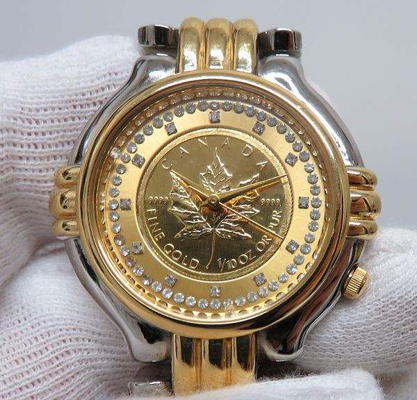 ◆両面 純金 カナダ メイプルリーフ 金貨 1/10oz(オンス) 腕時計◆メープルリーフ エリザベス女王 ゴールド コイン K24 24金 /動作未確認