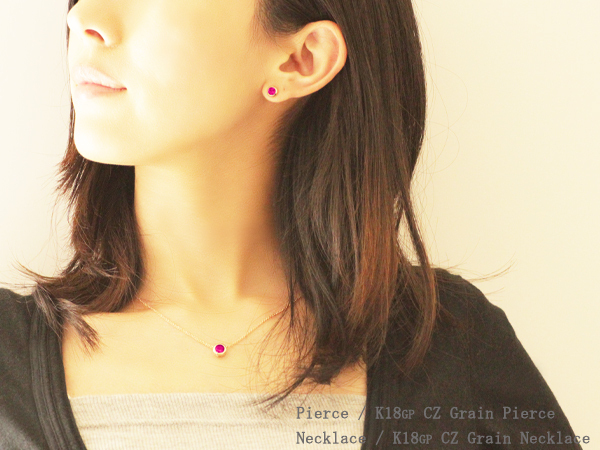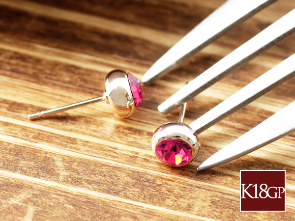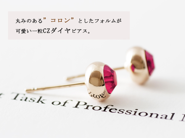 ピアス レディース ルビー シンプル 18金 18kコーティング ピンクゴールド 赤色 赤 カラー / K18GP CZダイヤ 一粒ピアス(ルビーカラー)