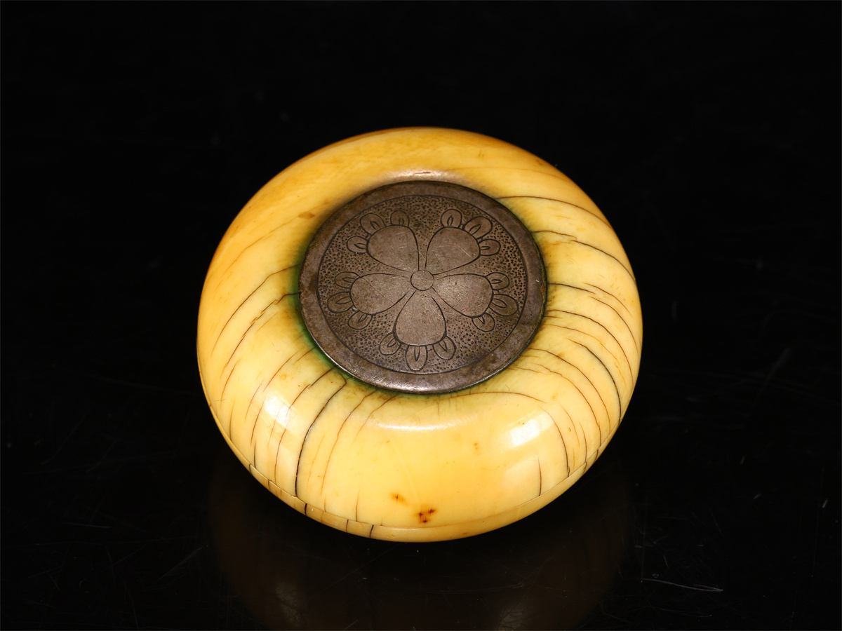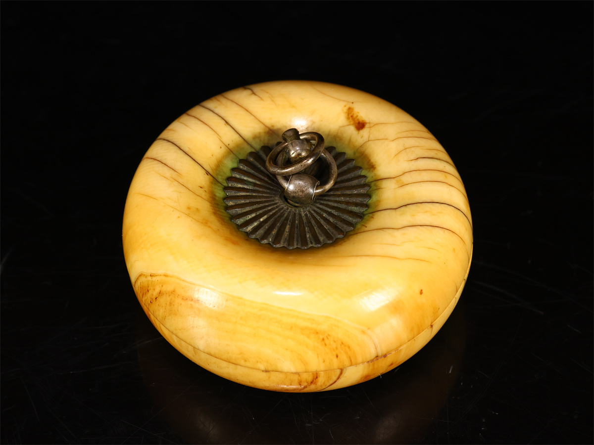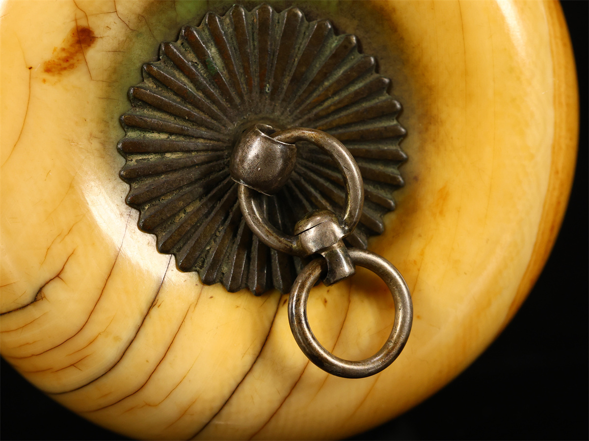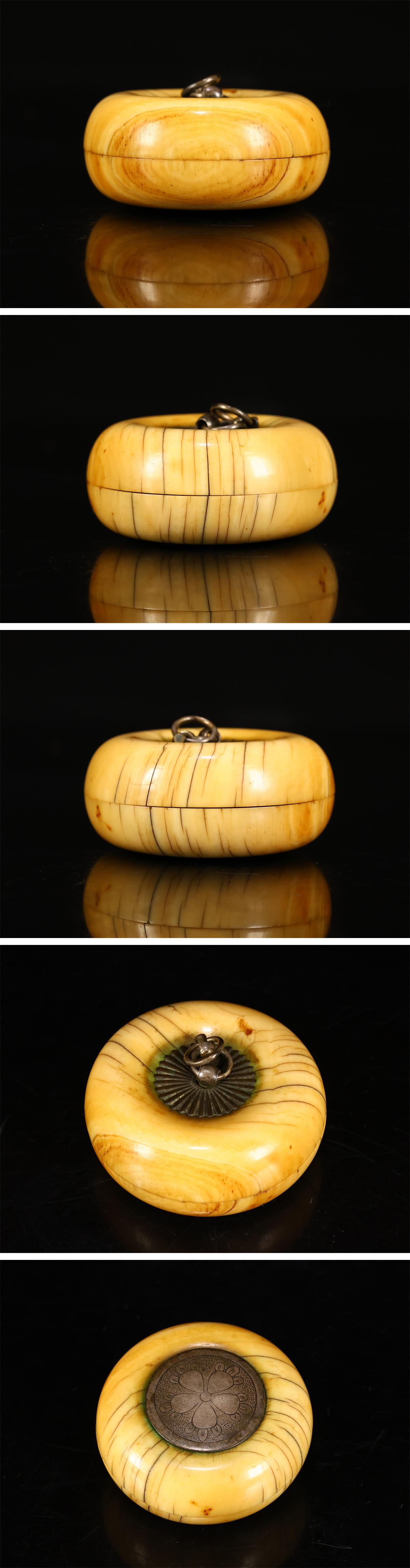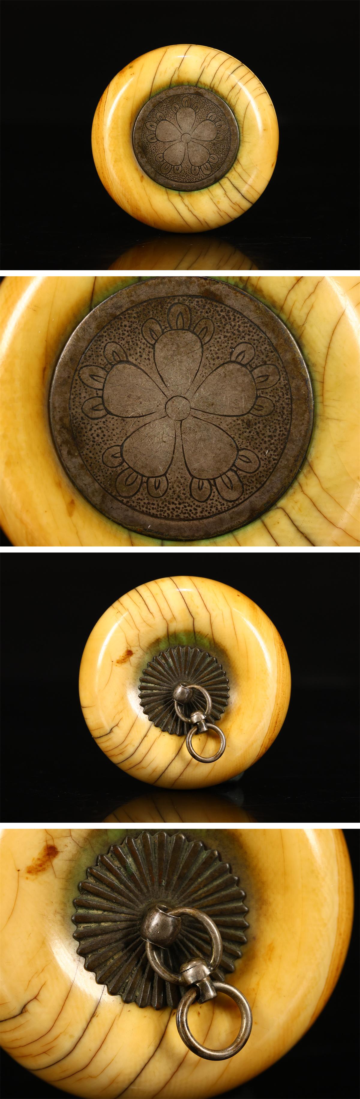 久1428 江戸時代 東洋彫刻 銀金具付 饅頭 根付 径5㎝ 重44g 美品S