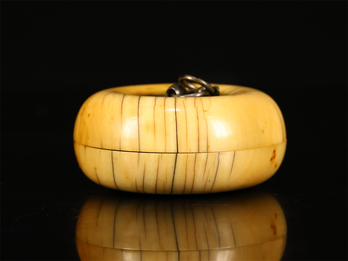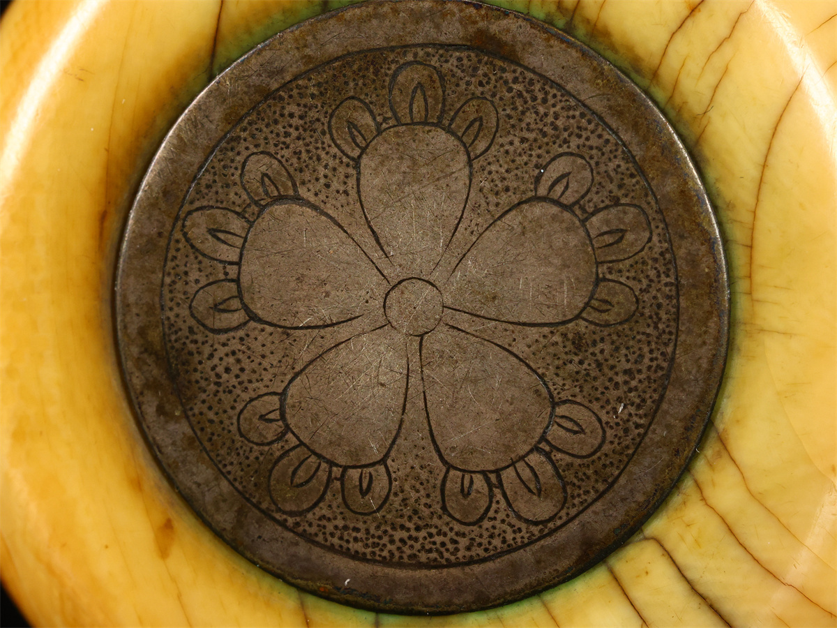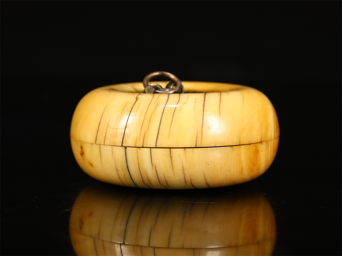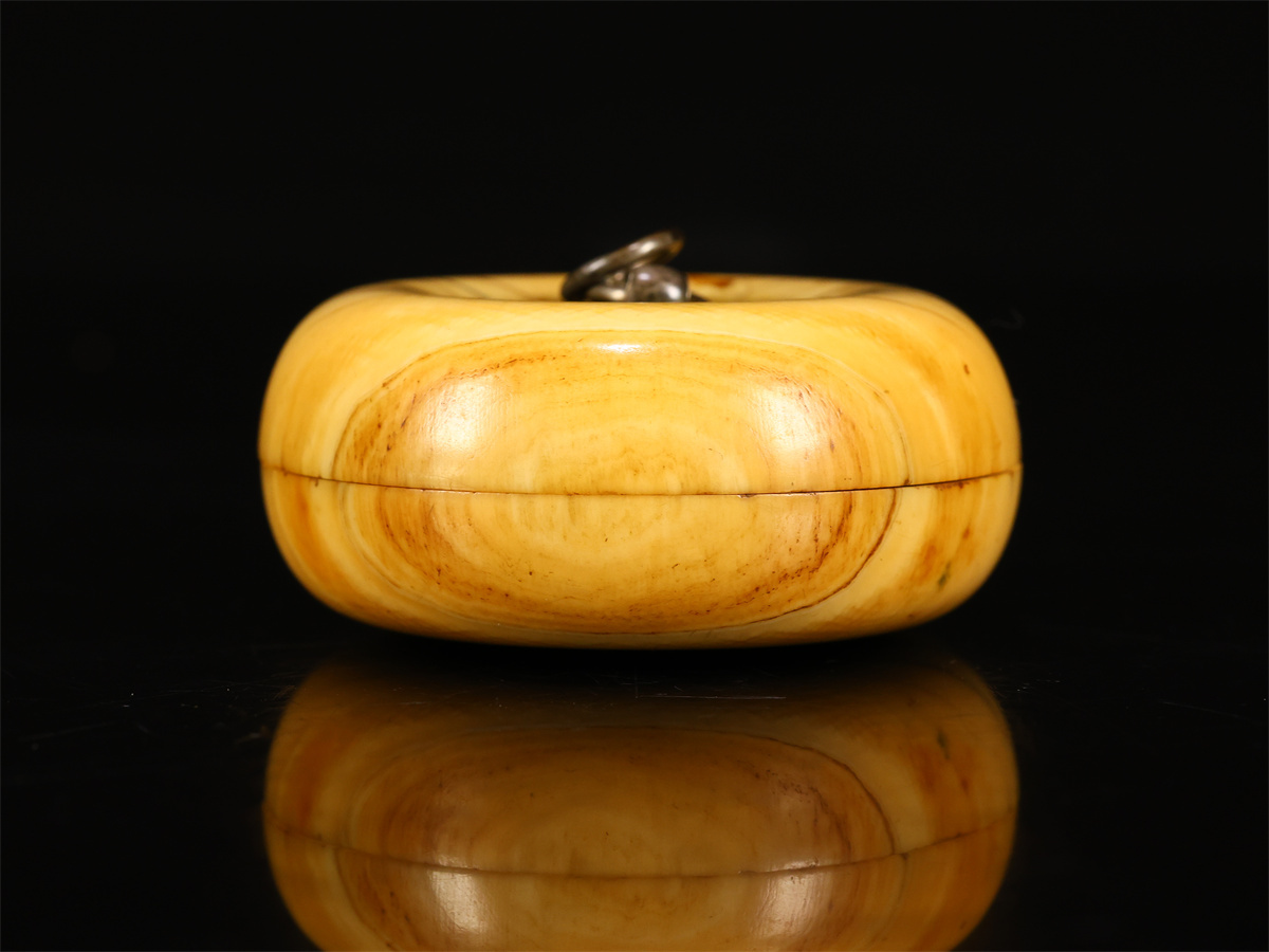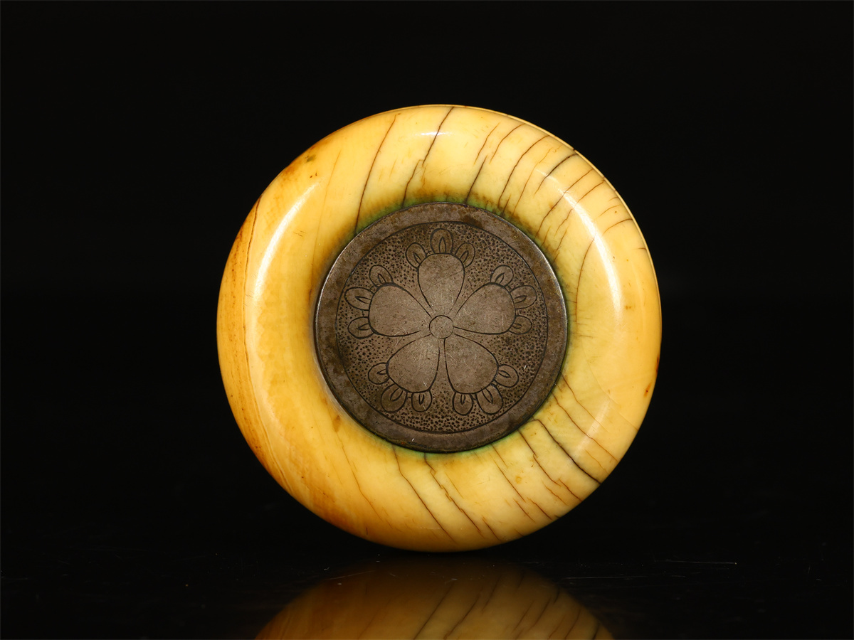 久1428 江戸時代 東洋彫刻 銀金具付 饅頭 根付 径5㎝ 重44g 美品S