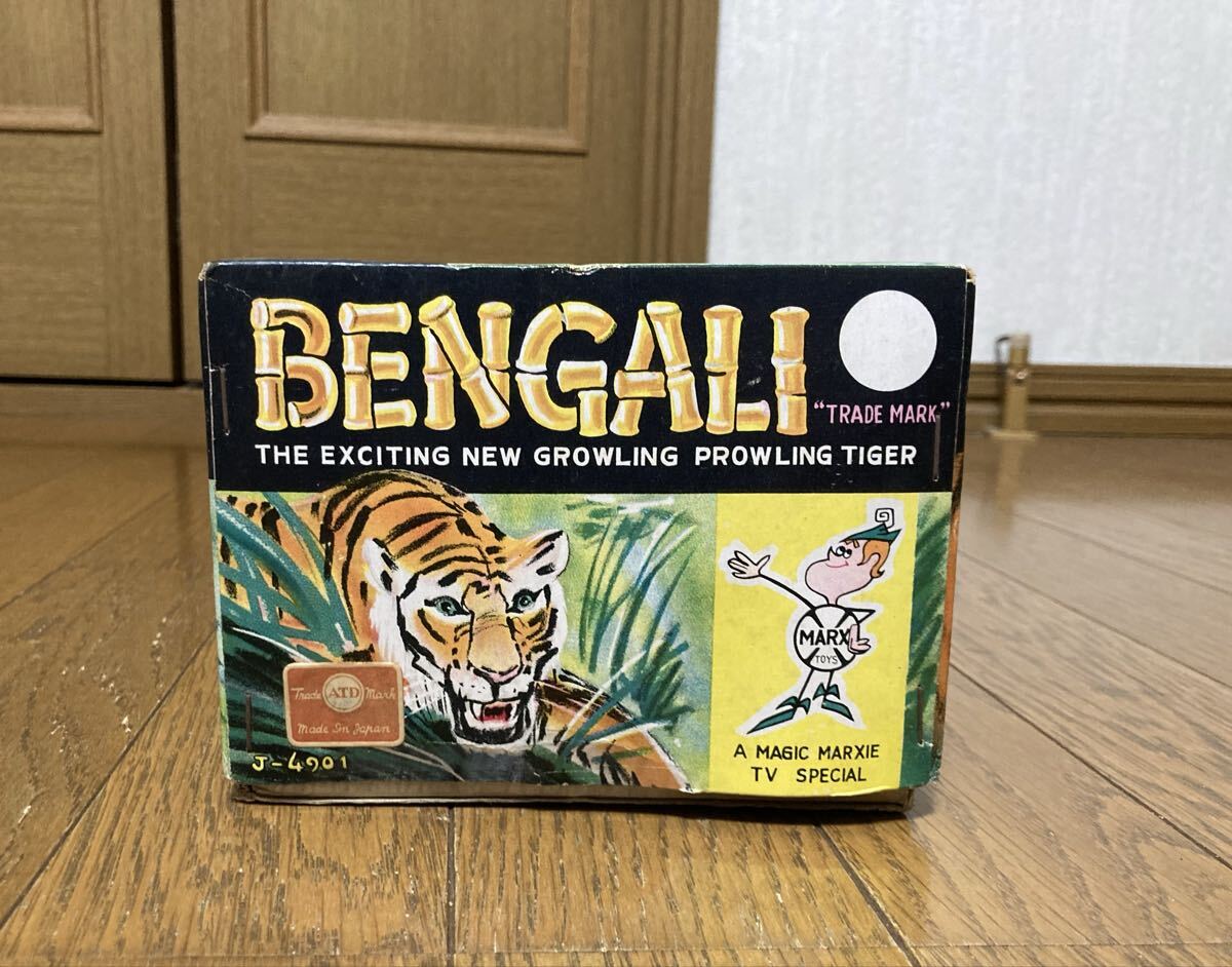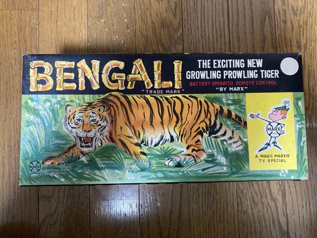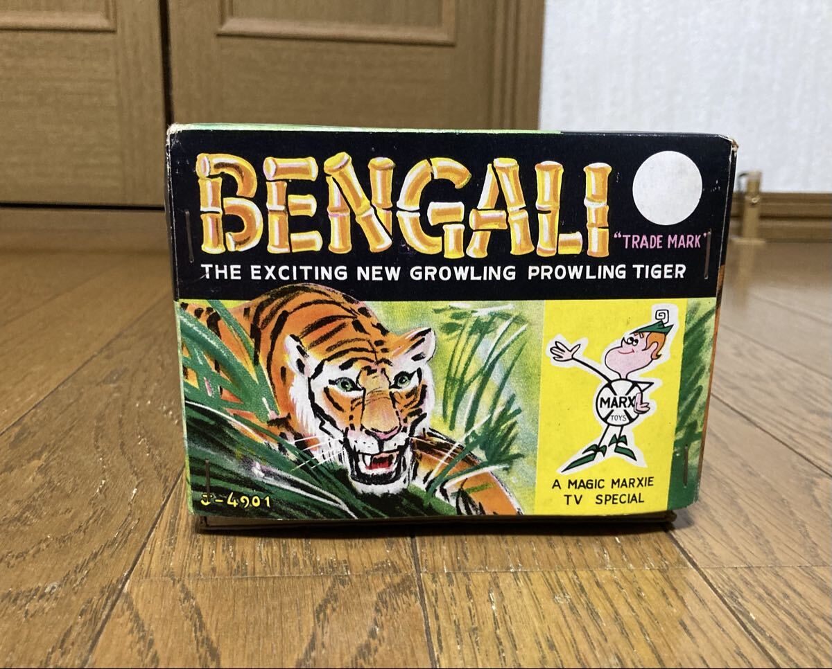 マルクス玩具製1950年代のベンガルタイガー。箱付きブリキ玩具です。箱から出すのが危ういくらい当時物の未使用品ですので動作確認はしていません。