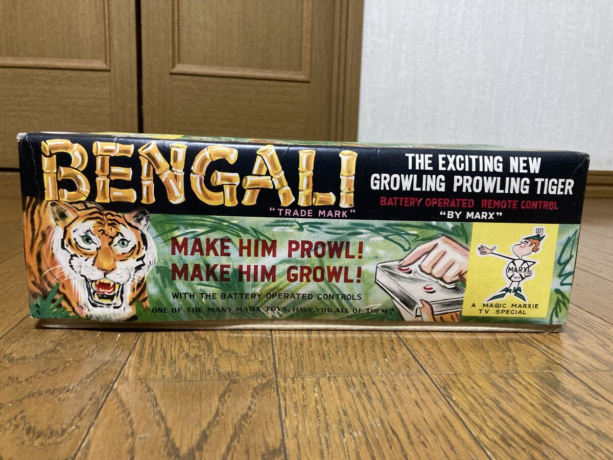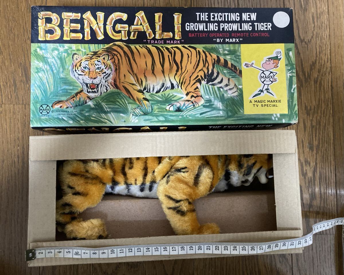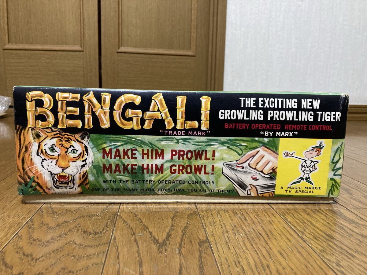 マルクス玩具製1950年代のベンガルタイガー。箱付きブリキ玩具です。箱から出すのが危ういくらい当時物の未使用品ですので動作確認はしていません。