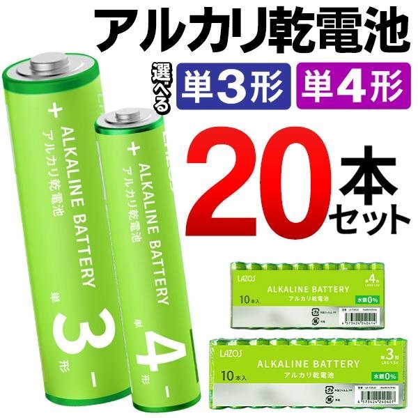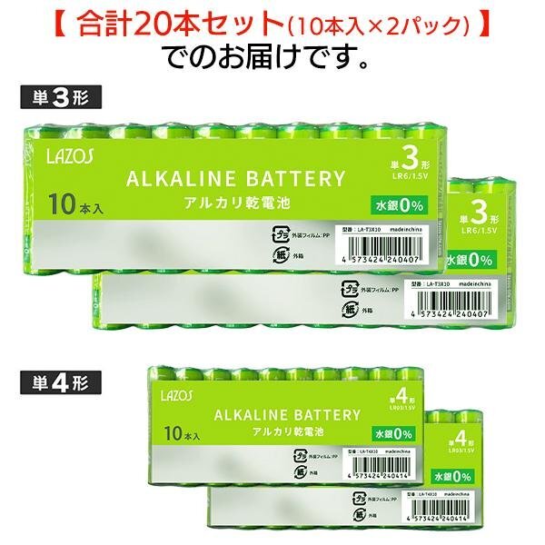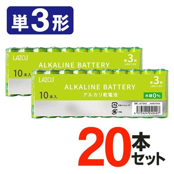 単3形 アルカリ乾電池 20本セット 乾電池 長寿命 水銀ゼロ 電池 単三 備蓄 防災 家電 予備 送料無料 2M◇ LAZOS:単3乾電池10本入x2パック