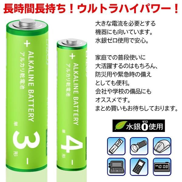 水銀ゼロ使用で安心の品質のアルカリ乾電池。