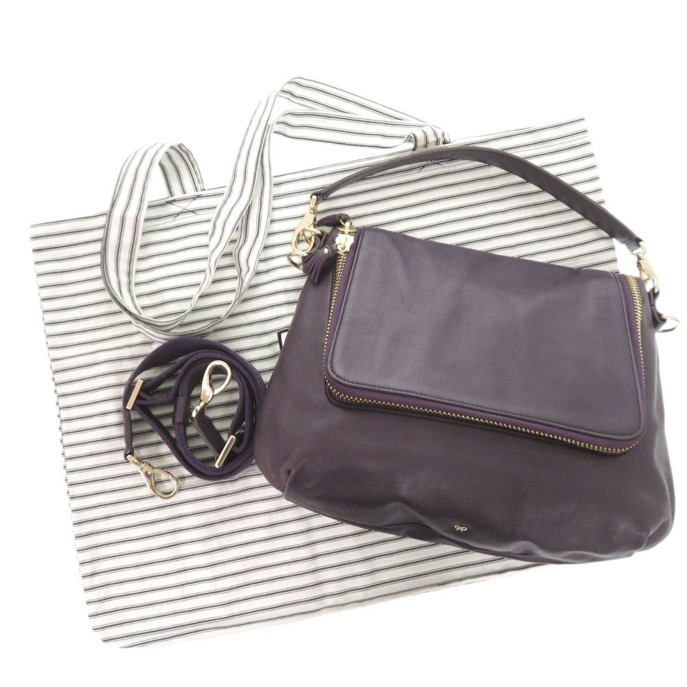 美品 アニヤ ハインドマーチ MAXI ZIP SATCHEL レザー パープル 2WAY ショルダーバッグ 1274 Anya Hindmarch