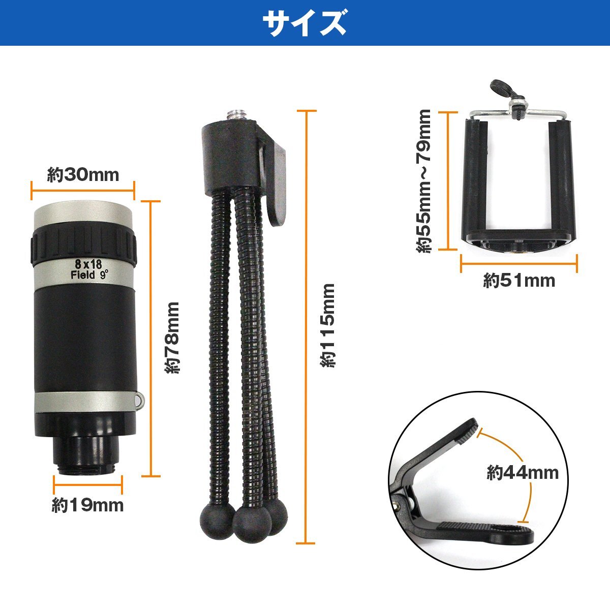【送料無料】ズーム望遠鏡 スマホ用 単眼鏡 コンパクト 8×18 三脚付き ポケットスコープ アウトドア