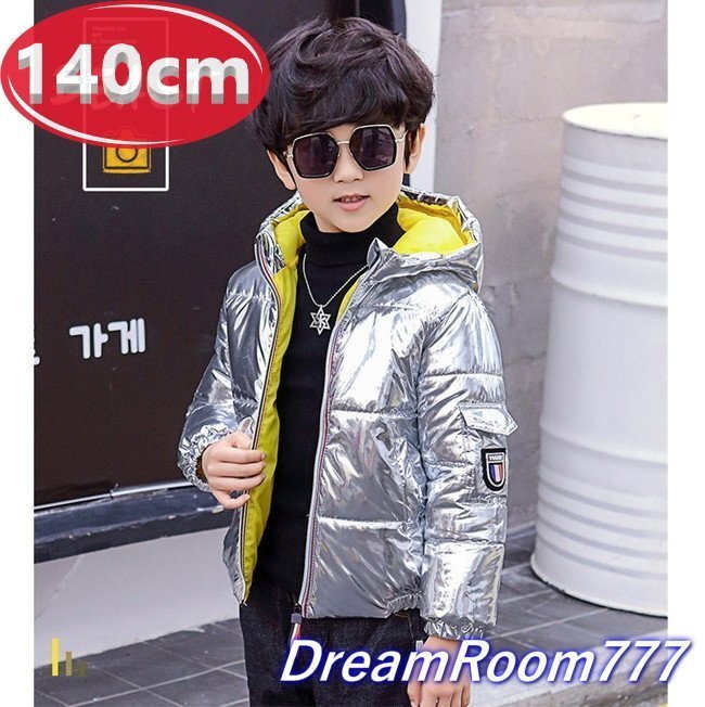 【140cm】メタリック ダウンジャケット シルバー ダンス アウター ジャケット 子供服 女の子 男の子 韓国子供服