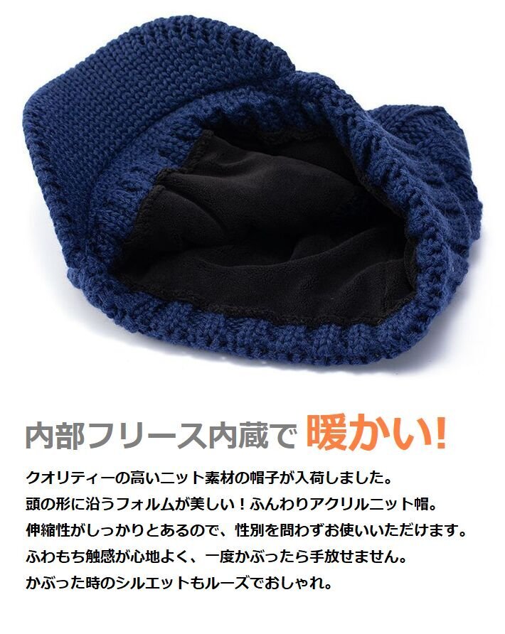 ニット帽 ニットキャップ メンズ レディース フリース内蔵 帽子 つば付き ビーニー ワッチキャップ 7986979 普通サイズ P 新品