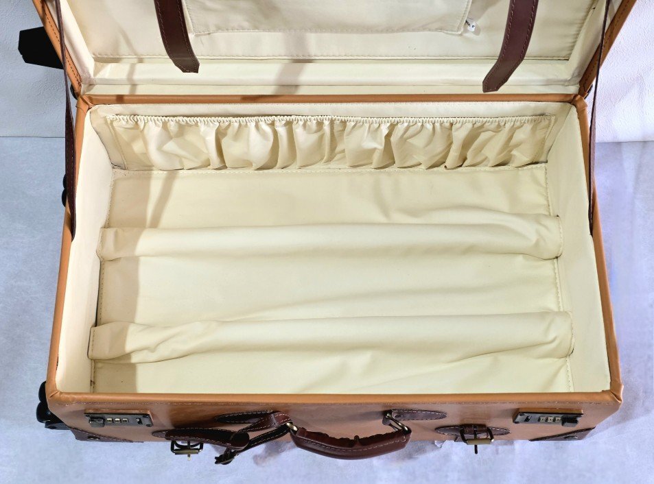 商品説明 クラシカルなスタイルのトランクで、旅行でも重宝するアイテムです。 使わない時には、お部屋のインテリアとしても使えるお洒落なデザインです。 詳細 ●サイズ:奥行23cm、幅39cm、高さ67cm ●ランク:Cランク ●コンディション:内部や側面・ベルトに傷、汚れがあります。 |