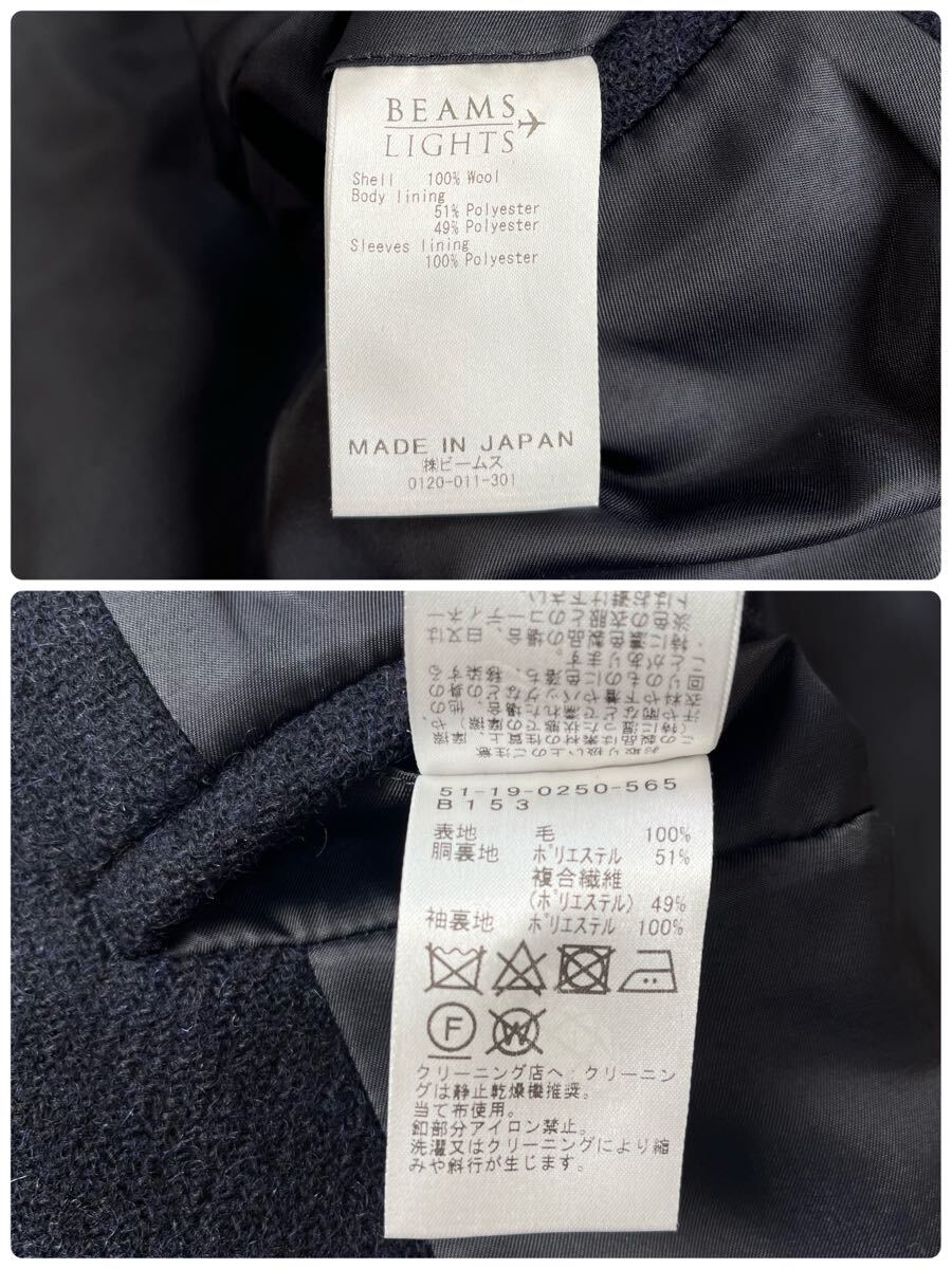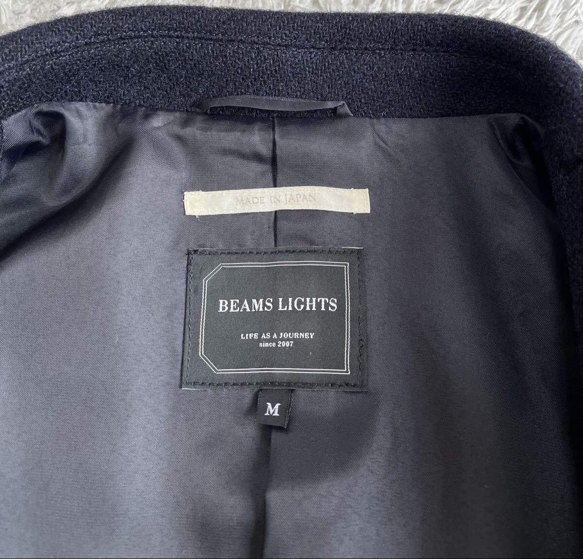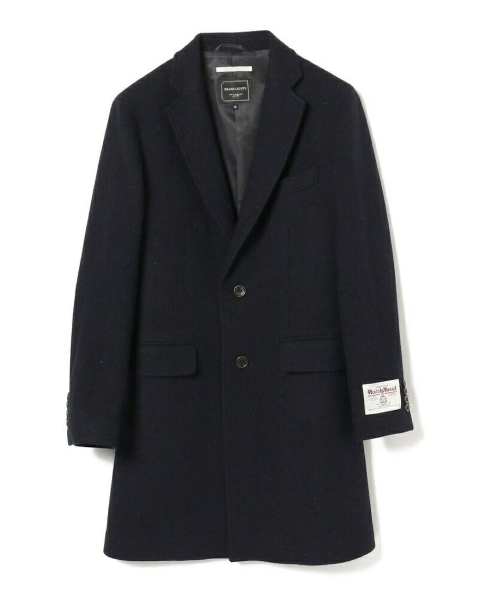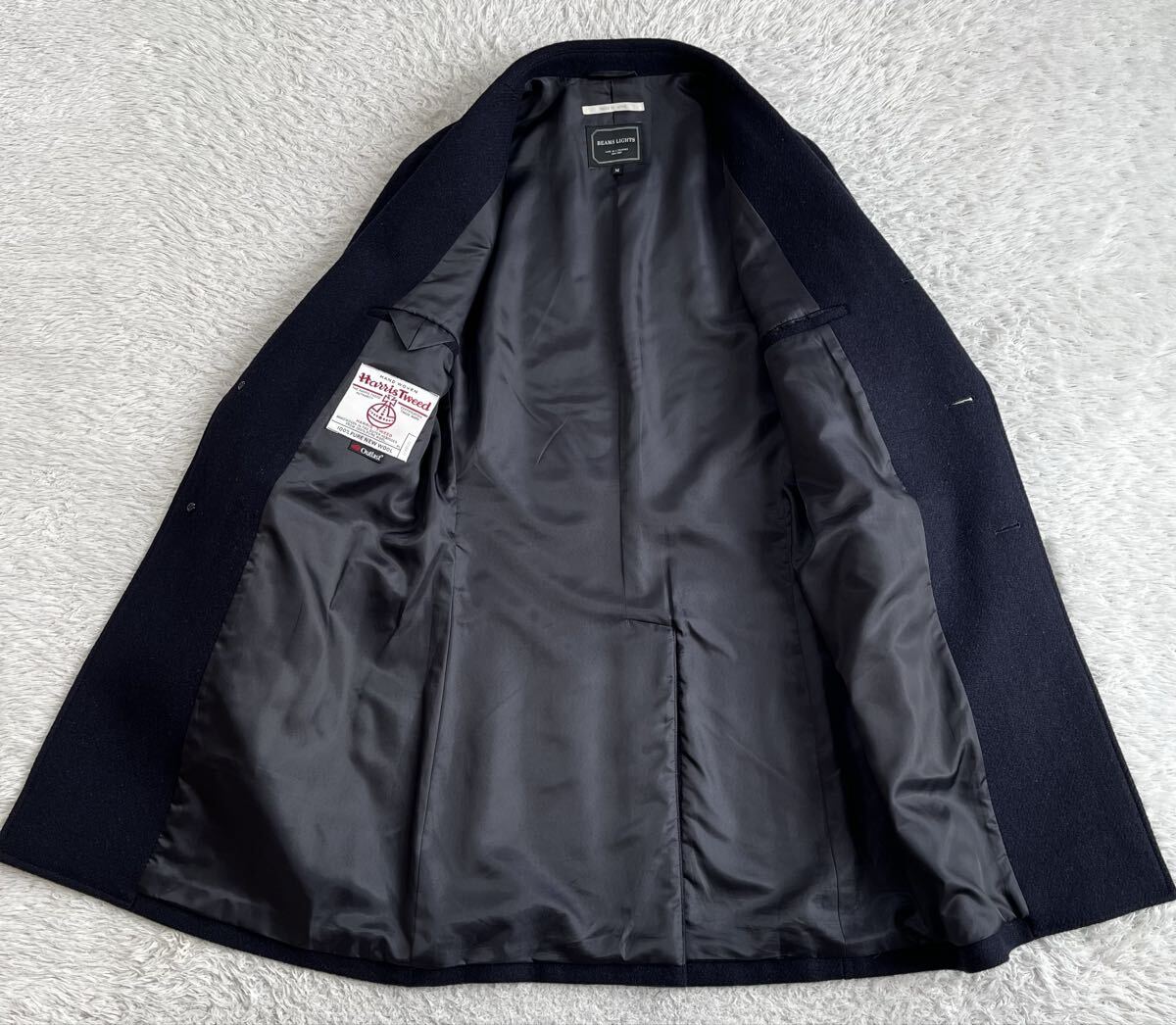 ビームス【英】ハリスツイード ウール チェスターコート Mサイズ ネイビー Outlast 日本製 BEAMS LIGHTS アウター ロング メンズ