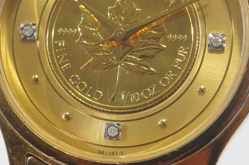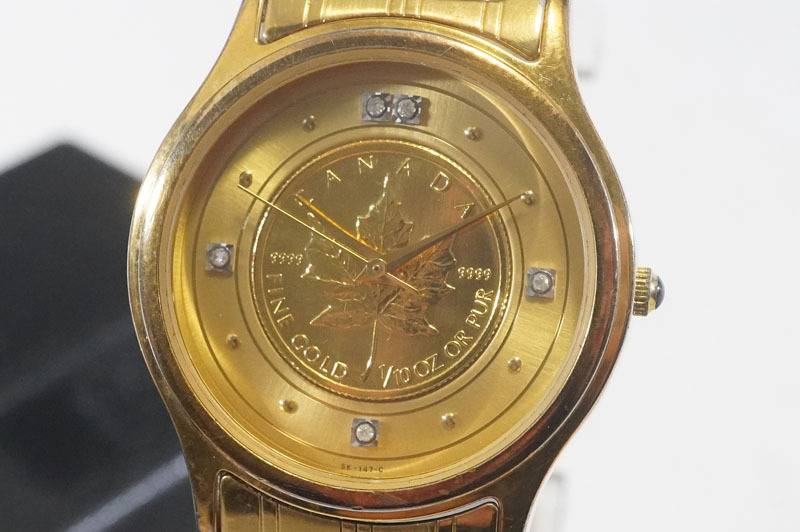 1円~【M302】実働 ELGIN CANADA カナダ メープルリーフ 金貨 FINE GOLD 1/10oz SK-147-C ゴールド コインウォッチ 腕時計