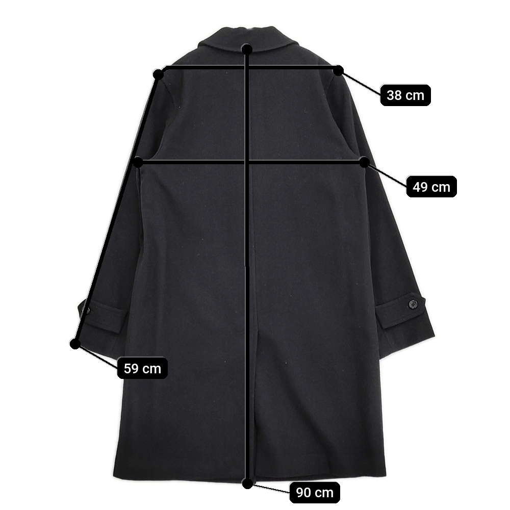 | 実寸サイズ | 肩幅:約38cm 着丈:約90cm 身幅:約49cm 袖丈:約59cm ※採寸画像がある商品はハンガーに吊るした状態での計測のため、平置きでの採寸とは差が生じる場合がございます。平置きでの実寸サイズをご希望の場合は、ご購入前に必ずご質問ください。 ※記載以外のサイズが合わないことを理由とした返品はできませんので、 記載部分以外で実寸サイズの気になる箇所があれば必ず購入前にご質問ください。 |