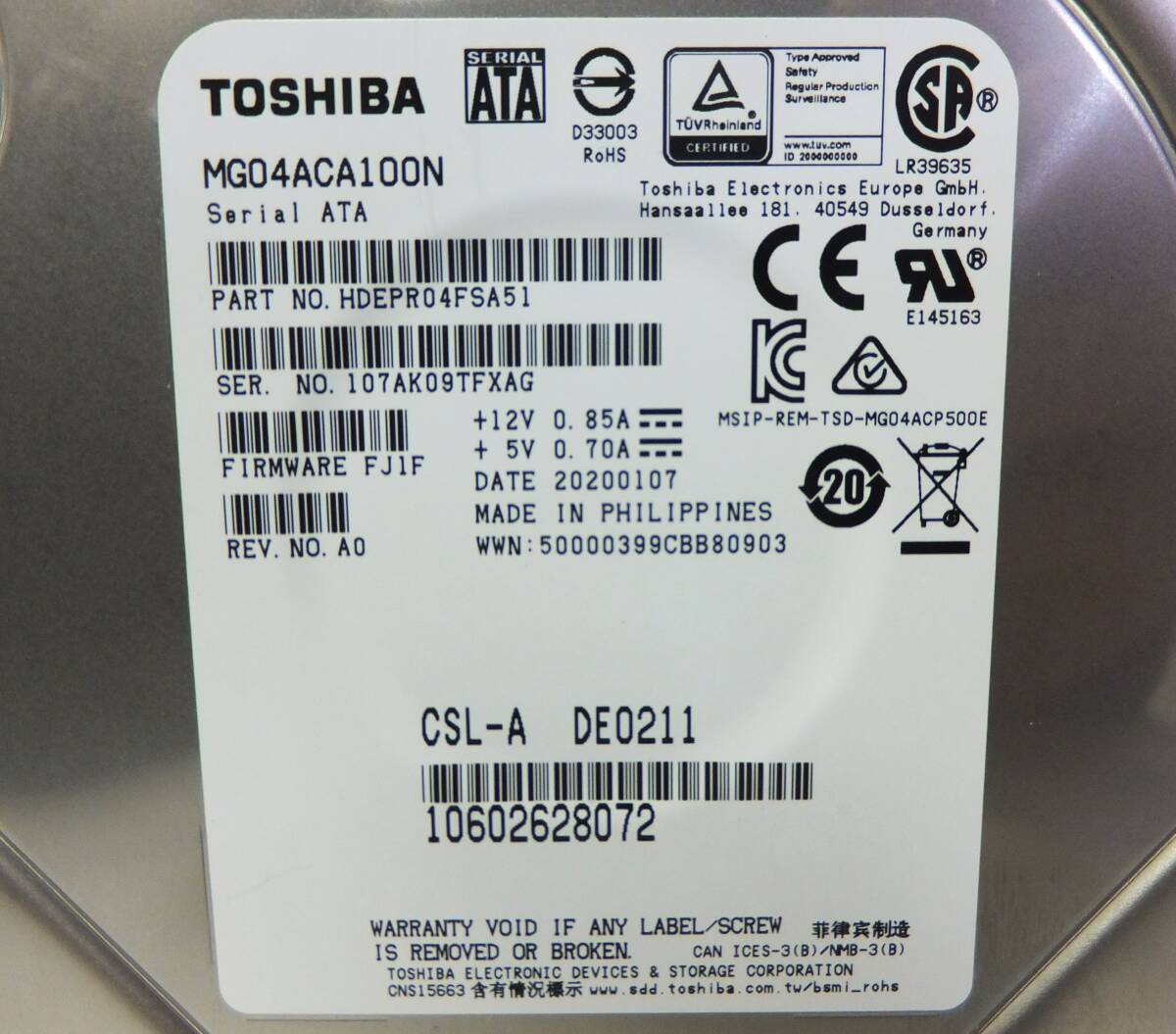 | TOSHIBA HDD MG04ACA100N 3.5インチ内蔵HDD 1TB ハードディスク 中古 | |