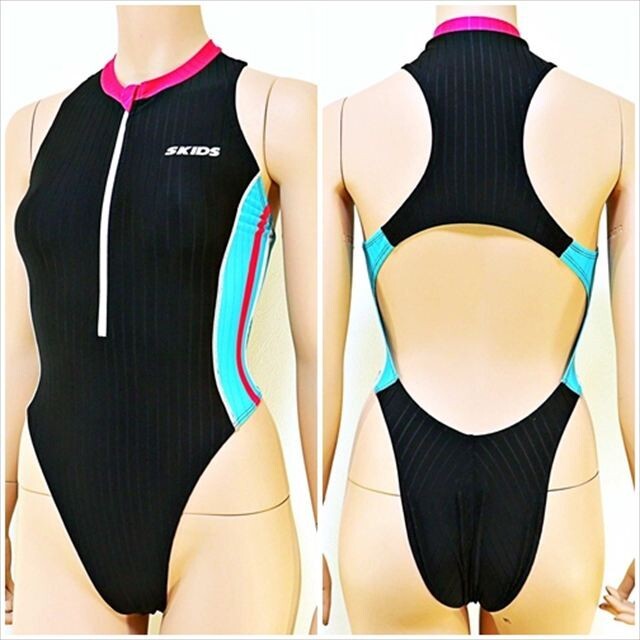 BE5-C76☆//ハイカット小尻競泳水着*Lサイズ♪フロントチャック/ハイネック*爽やかカラー※一番安価な送料はゆうパケットなら250円