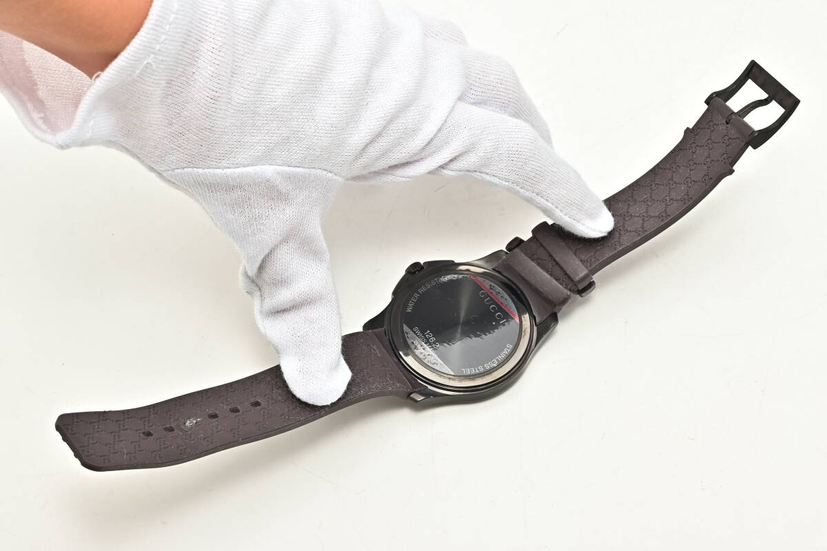 | ブランド名 GUCCI 商品名 126.2 カラー ブラック 素材 ラバー SS 状態 未可動品 実寸 ケース 縦5.0cm 横 5.0cm 全長 24.0 備考 ●現状未可動となります。動作確認は行っておりません。現状渡しとなりますのでご了承ください。 ●細かな擦れ等はほぼなく使用した形跡は特段感じられませんが、ベルトのラバー部分が一部経年劣化により破損しております。画像のご参照お願いいたします。 ●使用頻度はほぼない状態かと思いますが、保管品となりますので部分的に経年劣化している箇所があると思いますが、細かな確認は行っておりません。 ●ベルトにヨレ等劣化があります。 ●ラバーの破損部分は別途チャック袋にて同梱いたします。 ●ラバーに一部削れのようなものがあります。 ランクの説明等、詳しくは商品詳細ページをご確認下さい。ご利用のモニター環境により、実物と色・質感が若干異なる場合がございますので、予めご了承ください。お客様との感覚にズレがないよう記載しておりますが、極まれに細かなダメージがございます。必ず実サイズをご確認下さい | |||||
