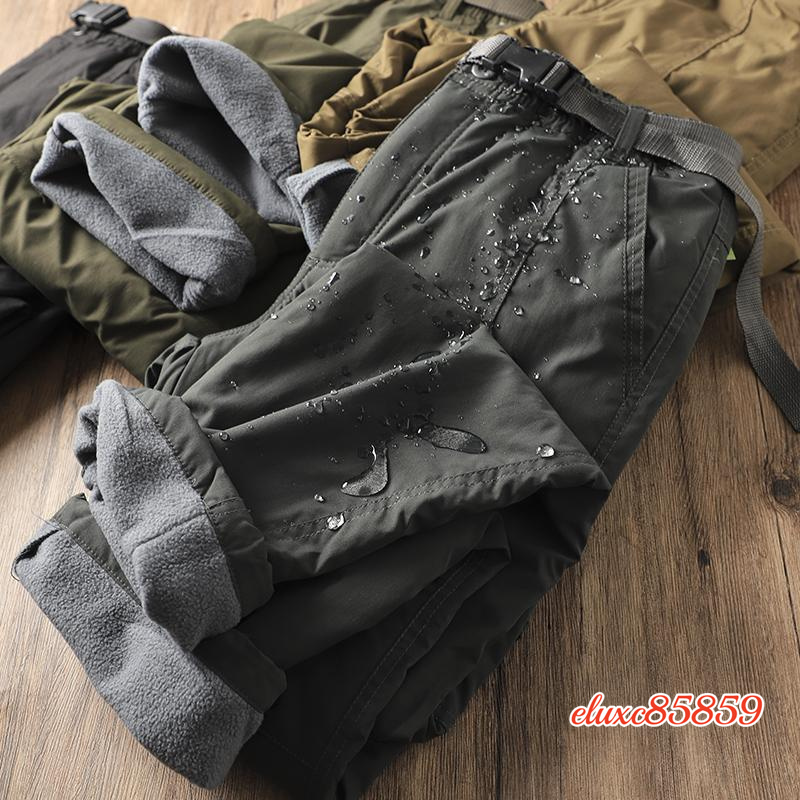 メンズ ソフトシェルパンツ 防風防水防寒 登山 秋冬 厚手 裏起毛 トレッキング ワークパンツ ストレート 撥水加工 アウトドア L オリーブ