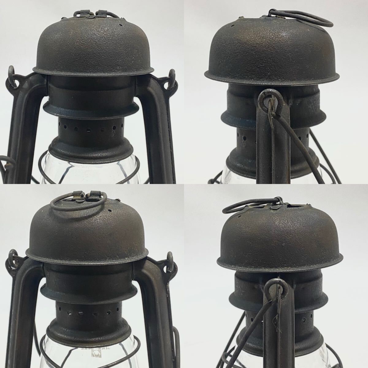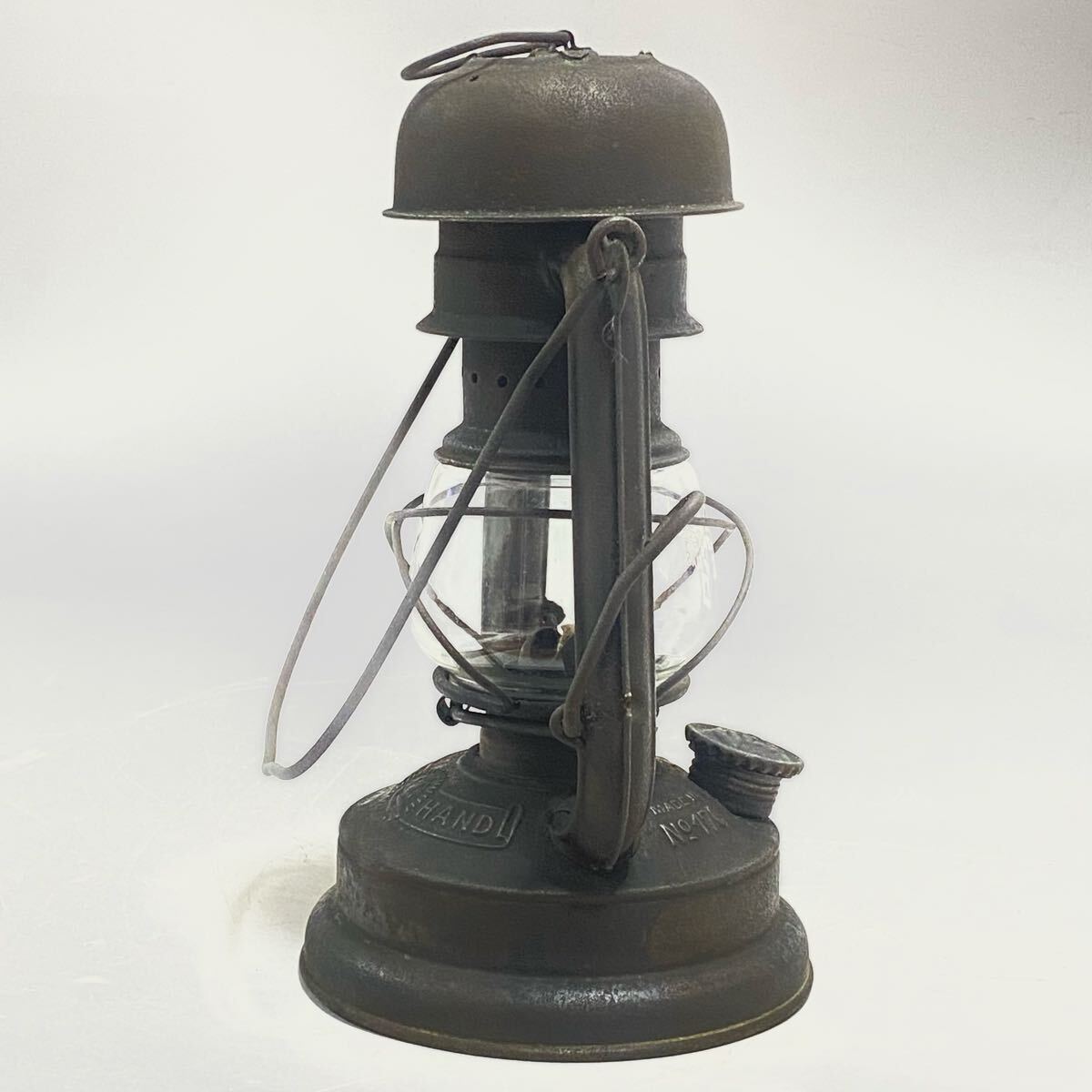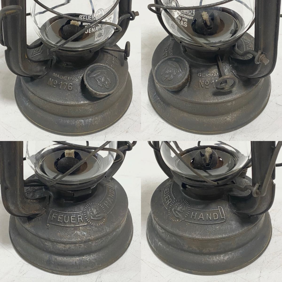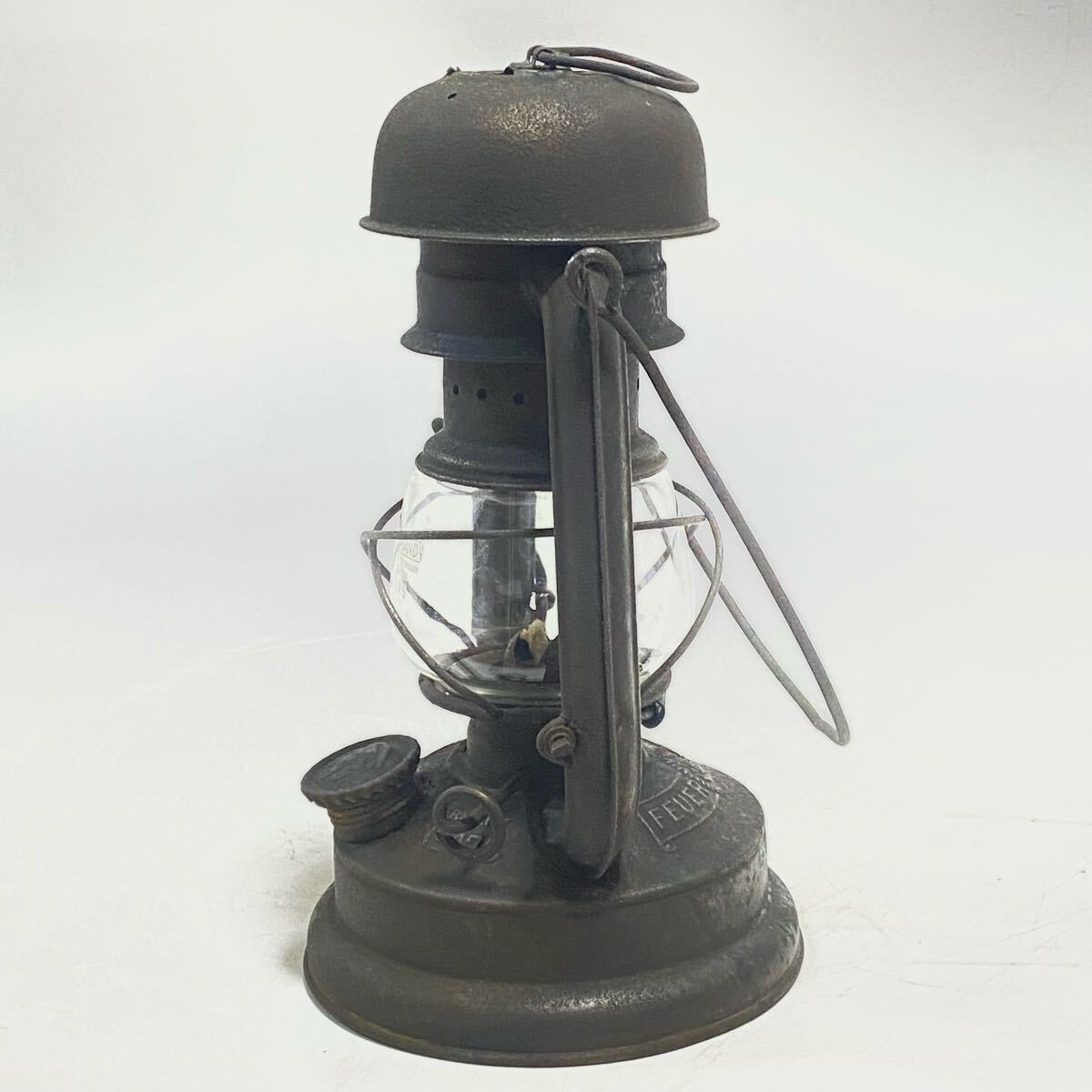 | ご覧いただきありがとうございます。 Feuerhand フュアーハンド 176e マッシュルームヘッド 1939年から1943年までのごく短期間のみ生産され 第二次世界大戦中のドイツ軍で使用されていた 軍用のハリケーンランタンです。 長時間燃焼が出来るように2分芯使用のバーナーとなっています(通常の176は3分芯使用)。 その形状からマッシュルームヘッドの愛称で人気が高いモデルです。 希少なモデルで海外でも高値となっています。 キズ・サビ・汚れがありますが、ビンテージとしては良い状態だと思います。写真で状態のご確認をお願い致します。 ウィックの上下、バーナー部脱着、燃料キャップの脱着、タンクの漏れはありません。 ホヤを持ち上げは問題ありませんが、レバーの保持が出来ません。 (レバーを抑えたまま点火すれば問題ありません) 本体高さ 21cm | ||
