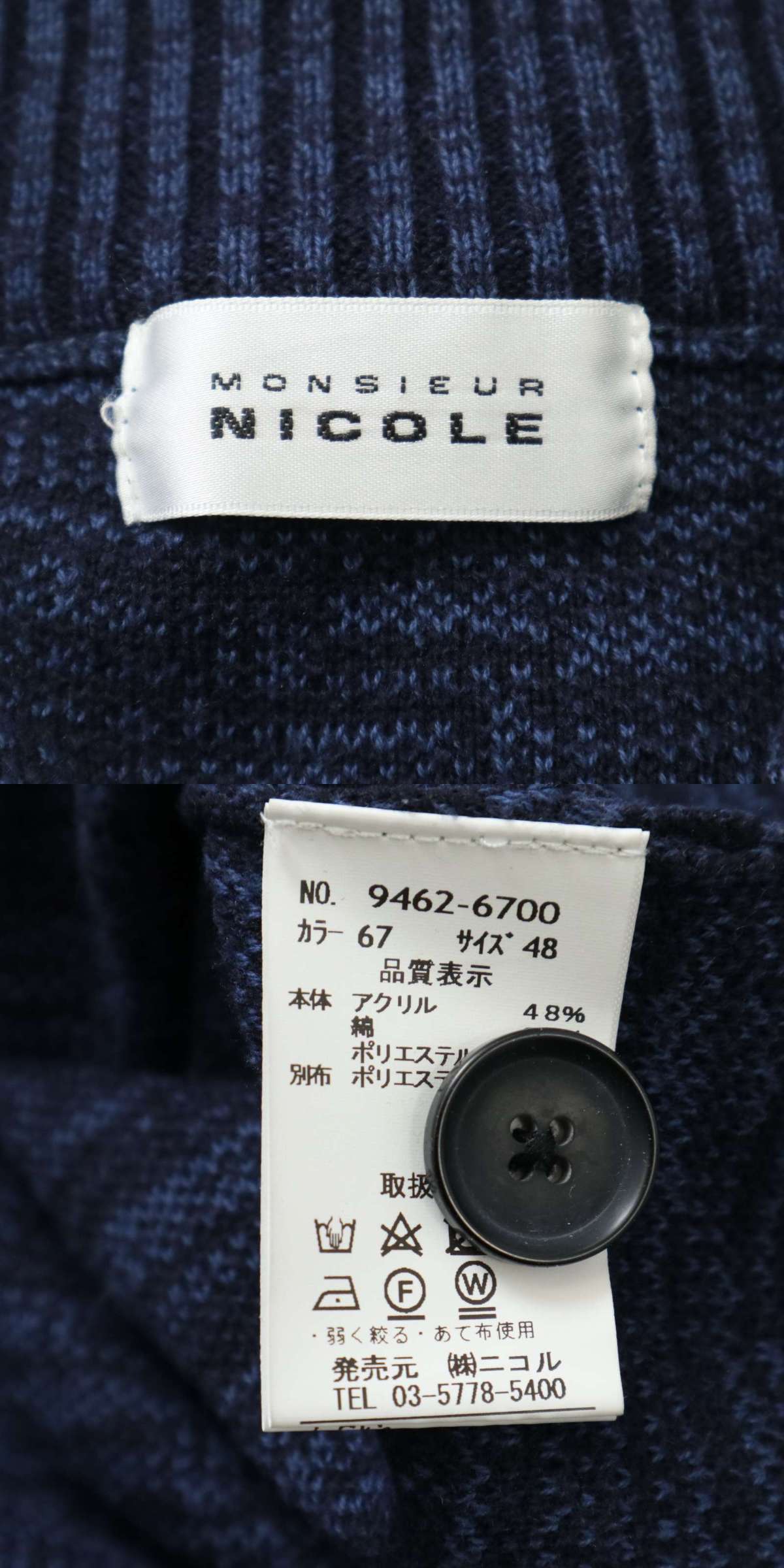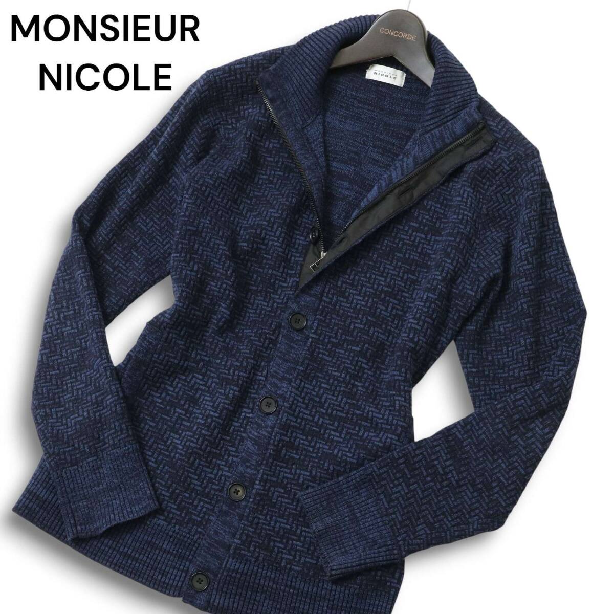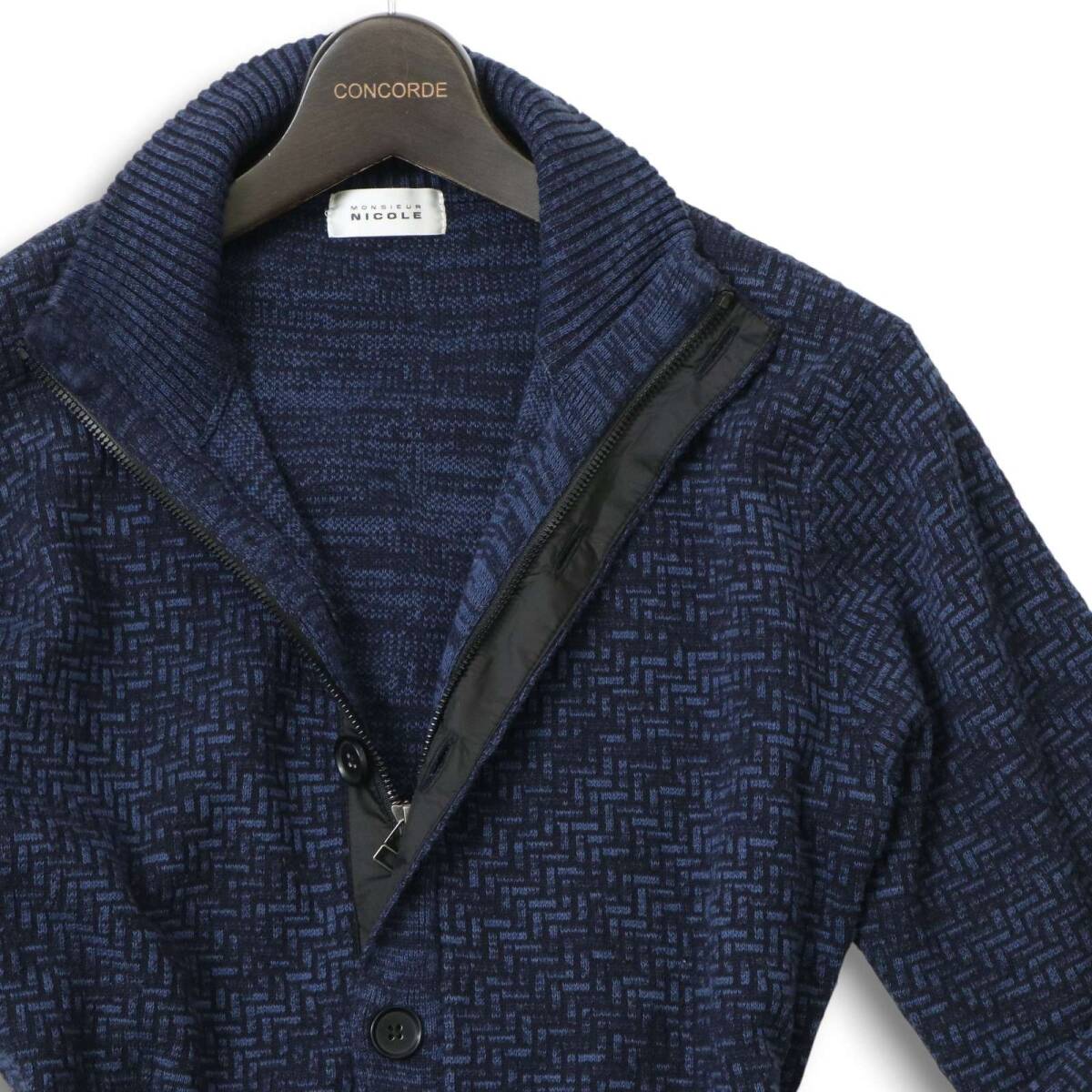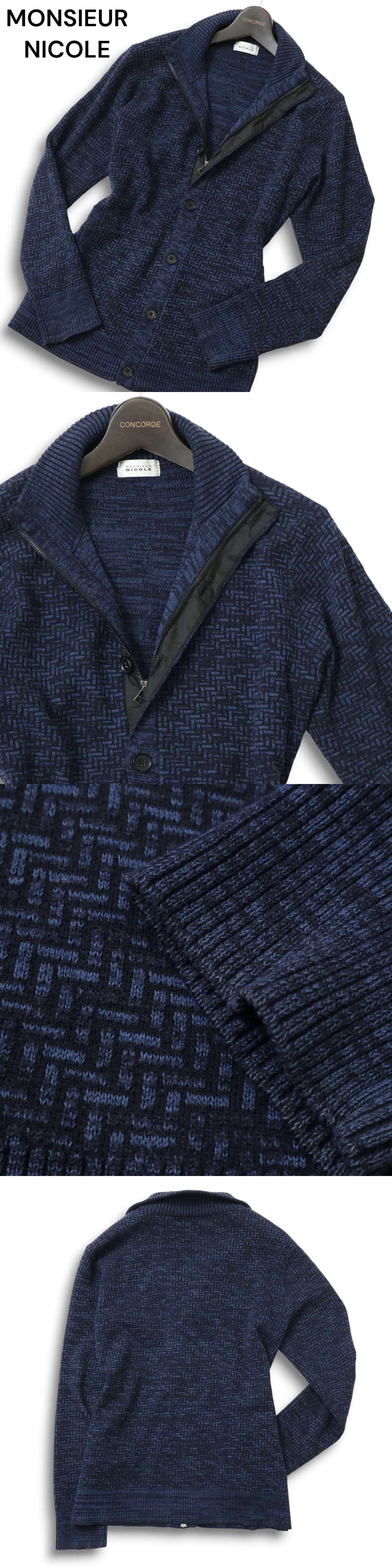 MONSIEUR NICOLE ムッシュ ニコル メランジ調★ スタンドカラー ニット ジップ ブルゾン ジャケット Sz.48 メンズ ネイビー