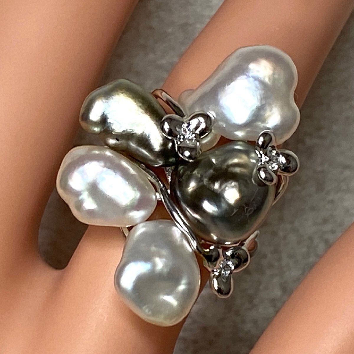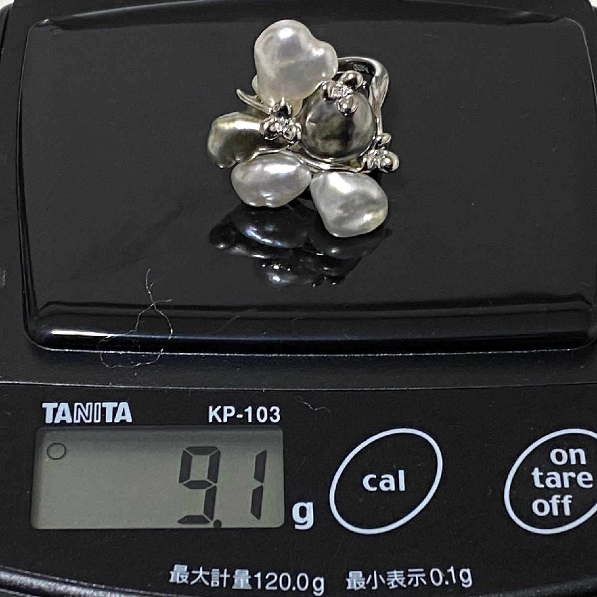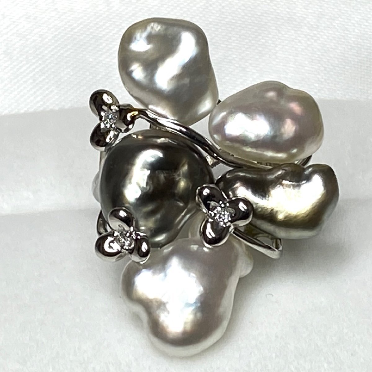 | ☆【KJC】Pt900(プラチナ)南洋無核真珠 ケシ /ダイヤ 0.03ct パール リング 指輪 サイズ約6番くらい | ||