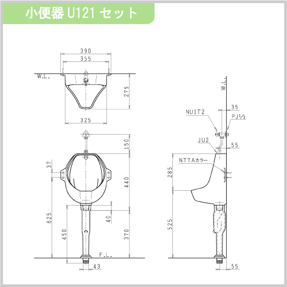 小便器 壁掛小便器・ハンドル水栓セット U121/BW1 Janis ジャニス