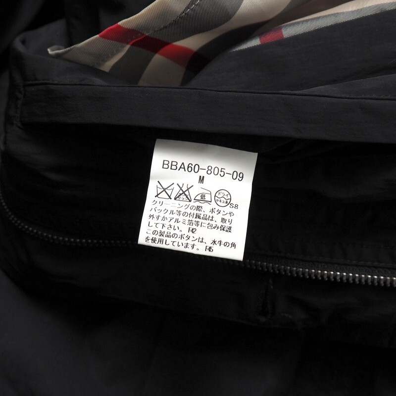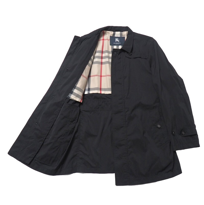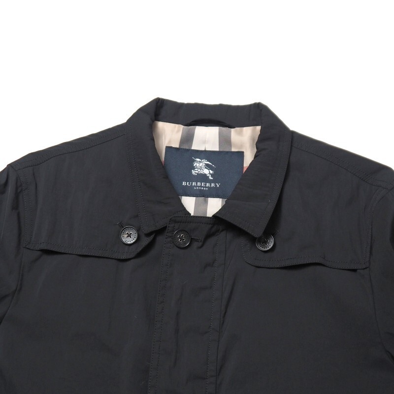 | TJ7459□バーバリー/BURBERRY LONDON メンズM ナイロンコート 比翼仕立て ハーフコート 裏ノバチェック柄 ブラック系/黒系 | |||