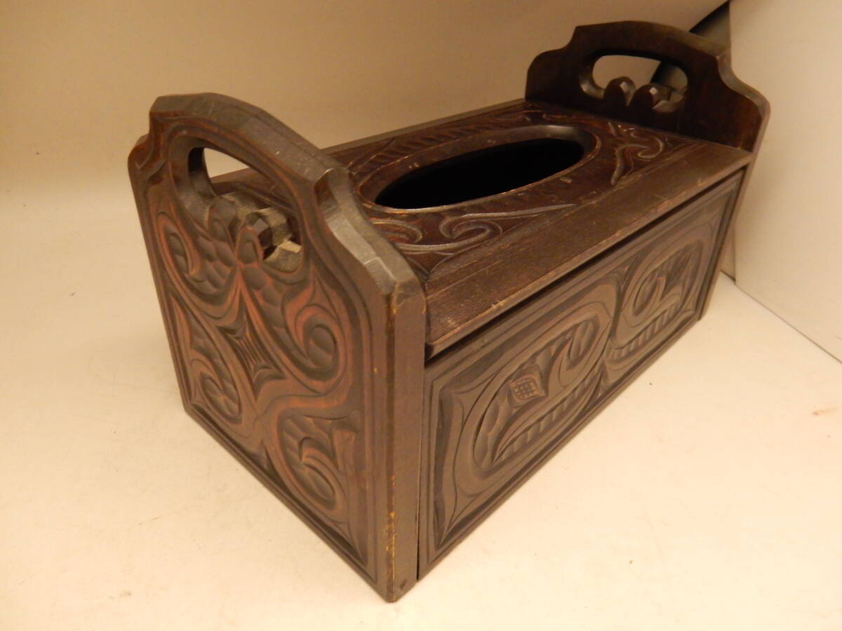 アイヌ彫り 木彫りのティッシュケース  ティッシュBOX