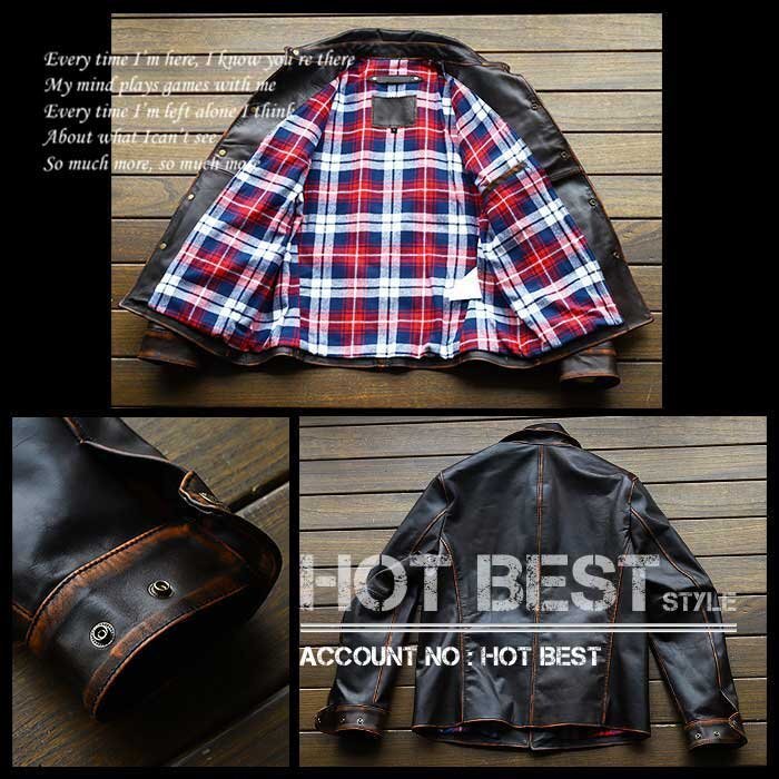 最高峰■ 茶芯 ホースハイド タイト メンズ 復刻 50's カーコート ブレーキマン ベジタブルタンニンなめし 馬革 3175【M~5XLサイズ指定可】