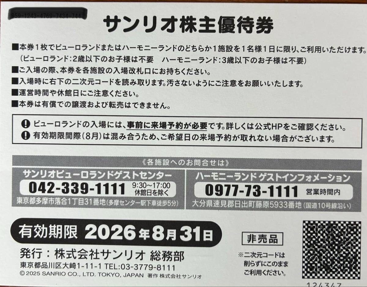 サンリオピューロランドまたはハーモニーランドをご利用いただけます