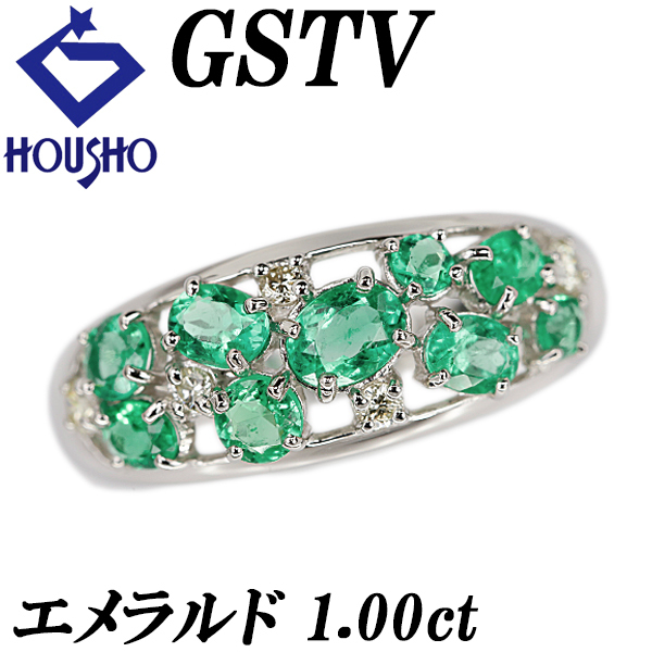 | 商品名:GSTV エメラルド リング 1.00ct ダイヤモンド Pt950 透かし ブランド | |