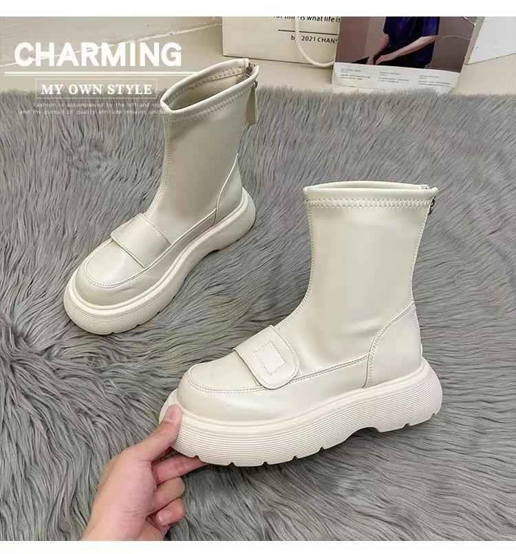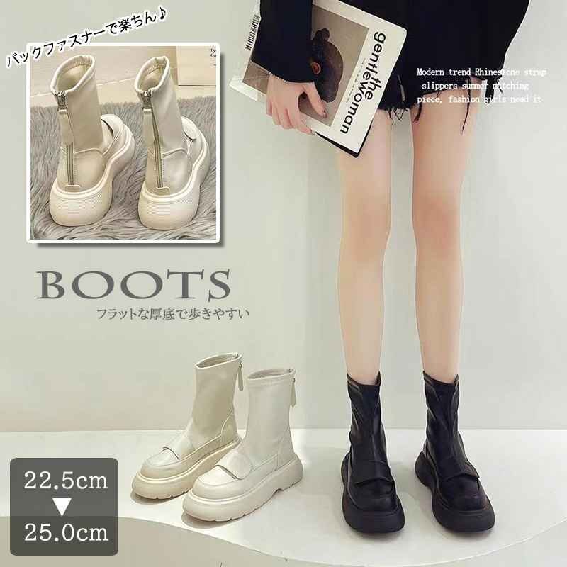 ブーツ ショート 太ヒール 裏起毛 美脚 脚長 スタイルアップ ミドル 36 ホワイト