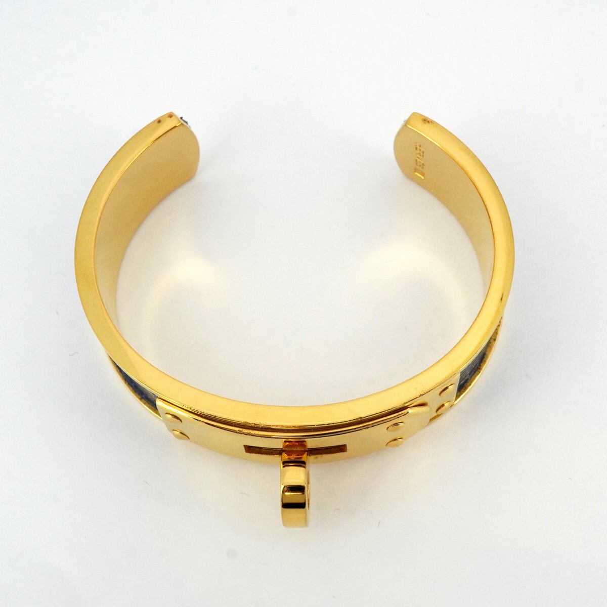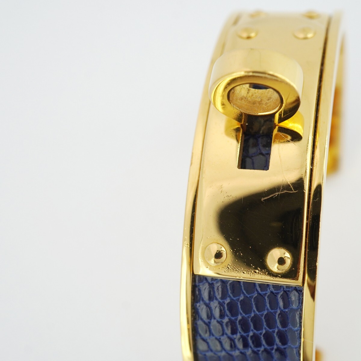 【5jpb0078】エルメス バングル ケリーバングル GPメッキ レザー ゴールド ブルー【中古】レディース