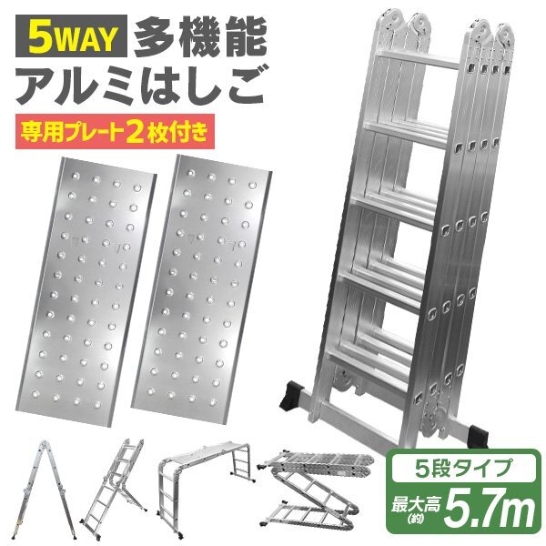 多機能アルミはしご 折りたたみ式 梯子 専用プレート2枚付 5段タイプ 5.7m |