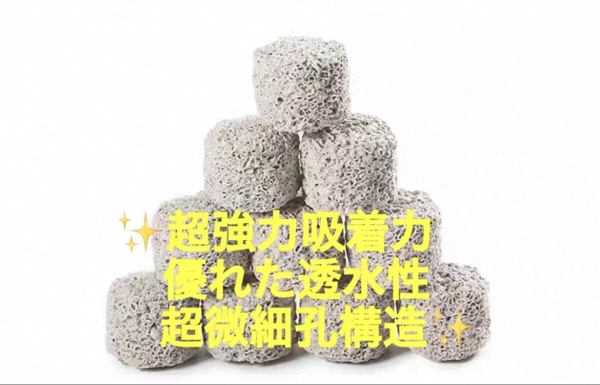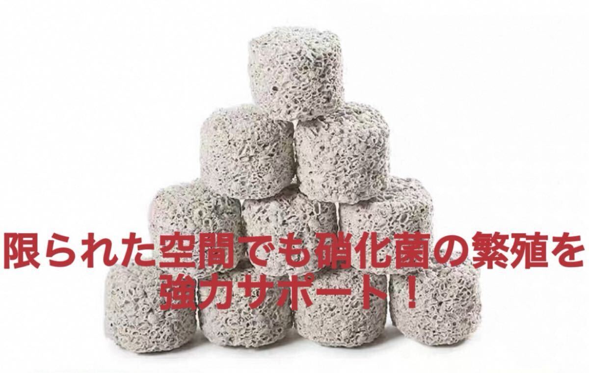 多孔質3Dブロックろ材でございます。超強力吸着 × 優れた透水性 × 超微細孔構造の高性能ろ材です。限られた空間でも硝化菌の繁殖を強力サポートします!