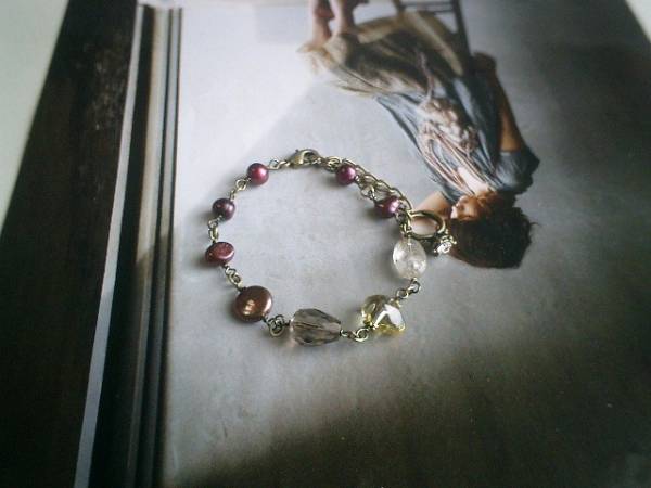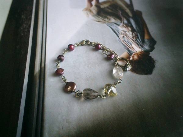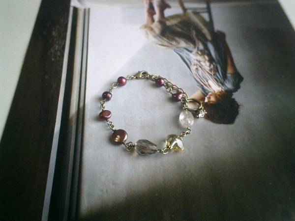 コレットの宝石箱・・シリーズです♪大人色のパール・・シックなダークレッドの淡水パールのブレスレットです♪深い赤の淡水パールは6ミリ位のバロック、10ミリ位のコインです♪神秘的なラフカットのレモン水晶やオーバルカットのルチルクォーツ、ドロップカットのスモーキークォーツを合わせて秋のロマンチックしています♪長さは全長23センチ位で調節自由です♪♪お揃いのネックレスも出品しています♪シンプルで長く着けられるデザインを考えて作りました!ハンドメイドをご理解頂いてノークレーム、ノーリターンでお願いします