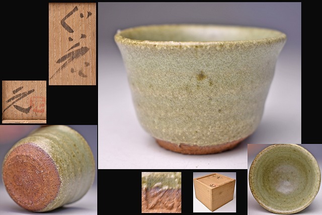 サイズは 74mmx高さ50mmです。 人気を誇った 高鶴元 氏の 作品です。 前衛的な作品のイメージがありますが、こちらは古上野釉のぐい呑です。 宅配便60サイズにて発送します。他にも多数出品してます。同梱対応いたします。
